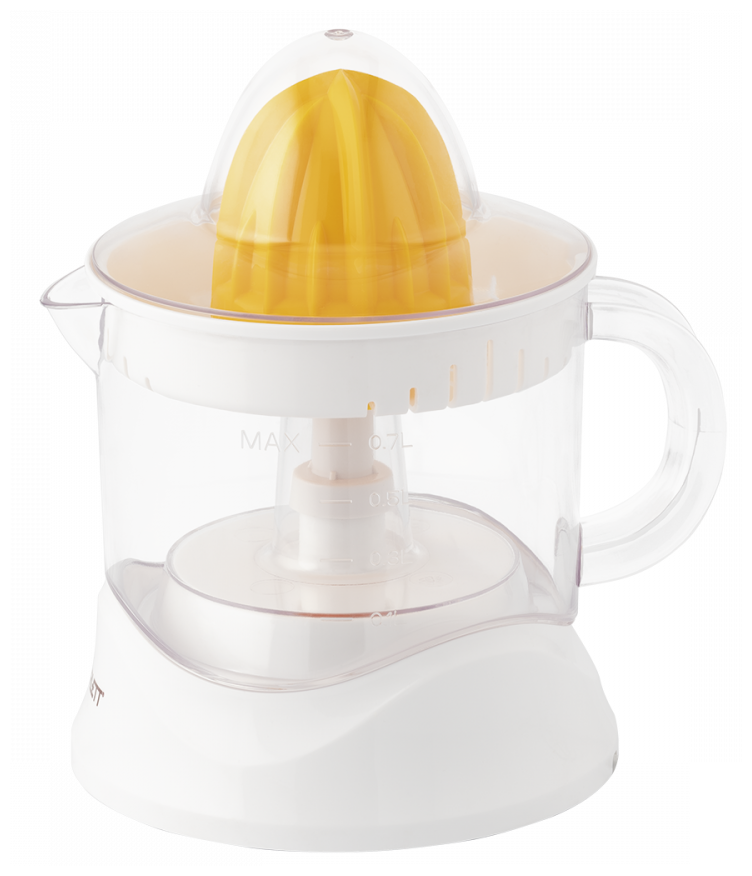 | Отзыв: | Размер компактный, приятный и красивый бело-желтый дизайн. Стоит устойчиво благодаря прорезиненным ножкам. Легко разбирается и быстро все моется и сушится. Пластик прочный, качественный. Отлично выжимает сок из разных цитрусовых, все до остатка. Для этого в комплекте есть две насадки в виде конуса, крышка от загрязнений. |