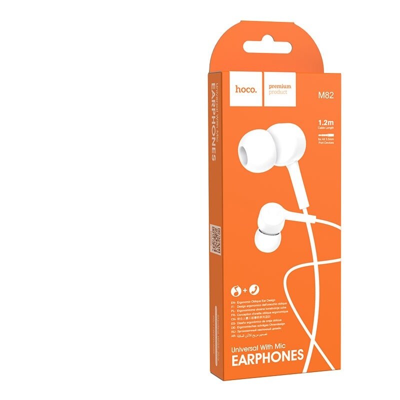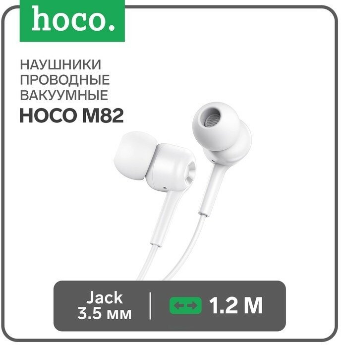 Наушники Hoco M82, проводные, вакуумные, микрофон, Jack 3.5 мм, 1.2 м, белые