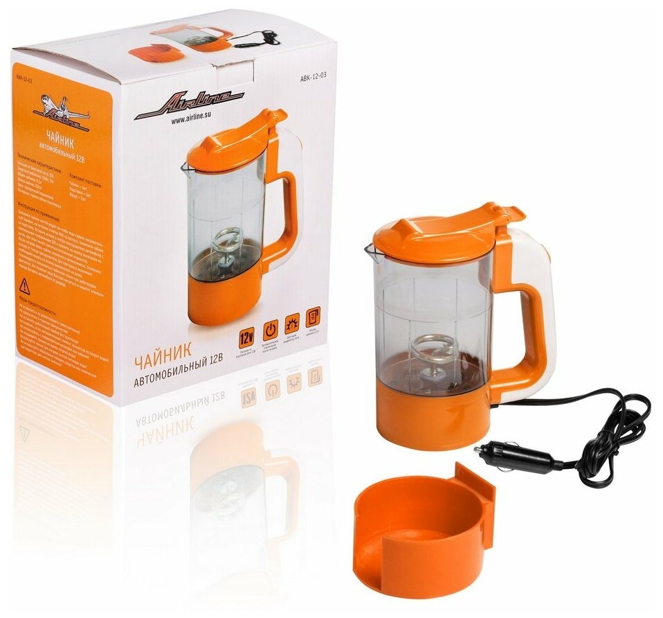 AIRLINE ABK-12-03 (ABK1203) чайник автомобильный 12в, прозрачный+оранжевый пластик, автоматическое