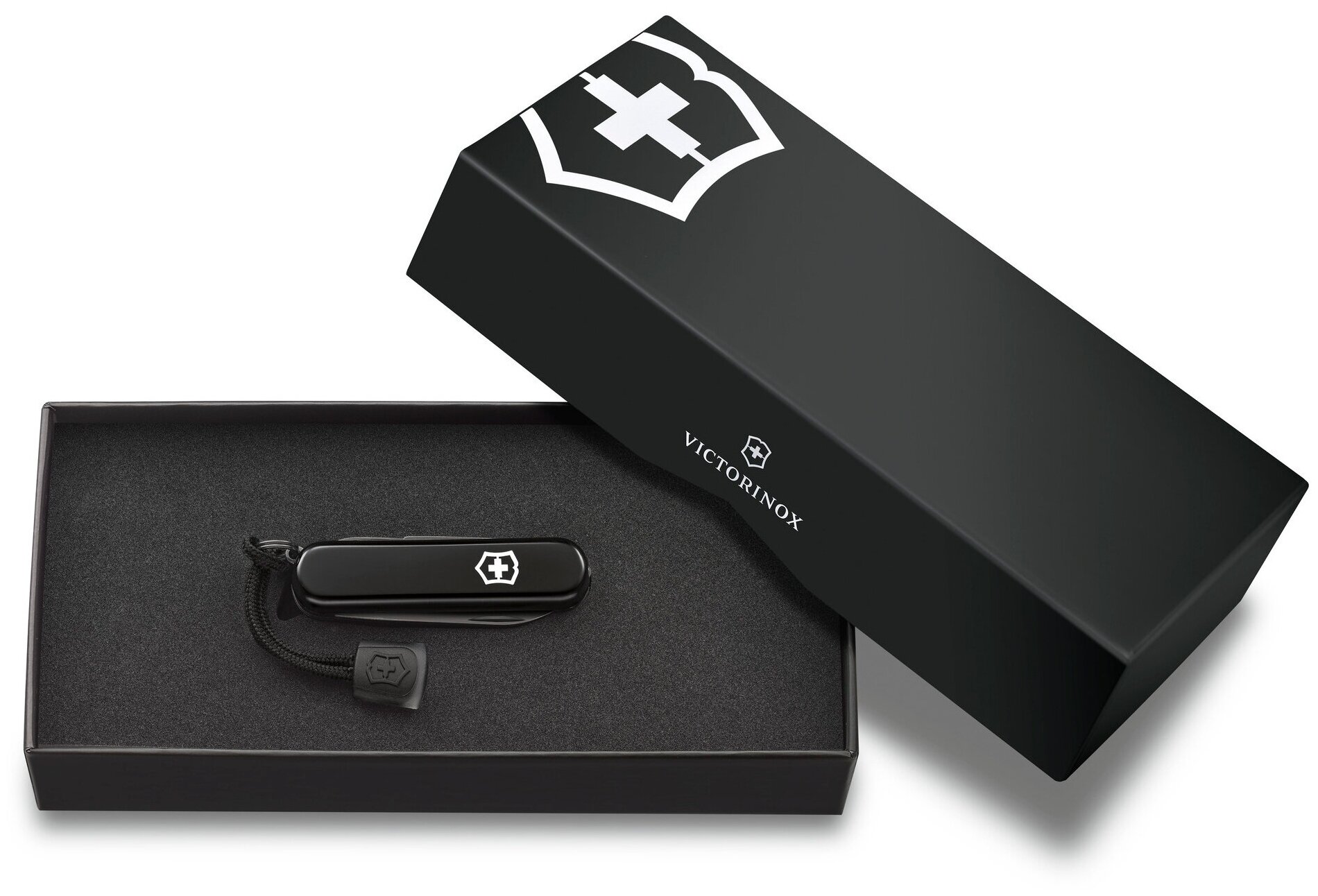Нож-брелок VICTORINOX Signature Lite Onyx Black, чернёная сталь, 58 мм, 8 функций, черный, со шнурком, в подарочной коробке 0.6226.31P