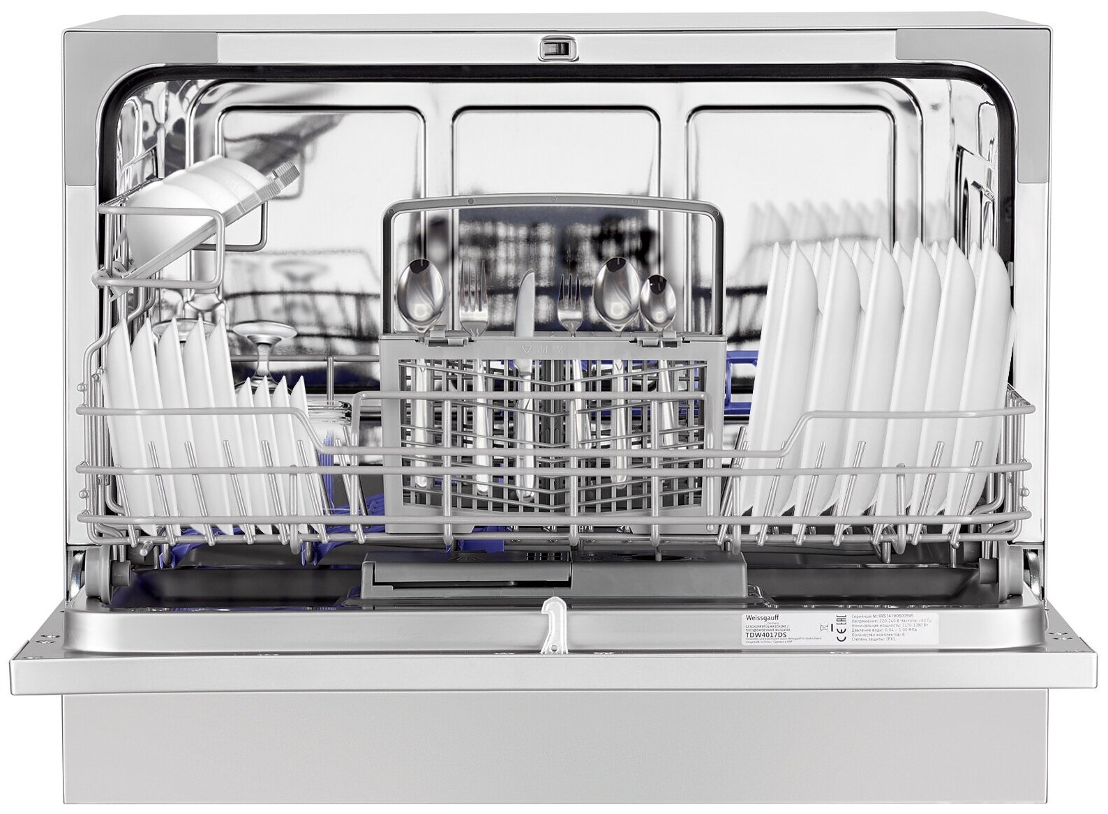 Настольная посудомоечная машина Weissgauff TDW 4017 DS, А класс мойки, А класс сушки