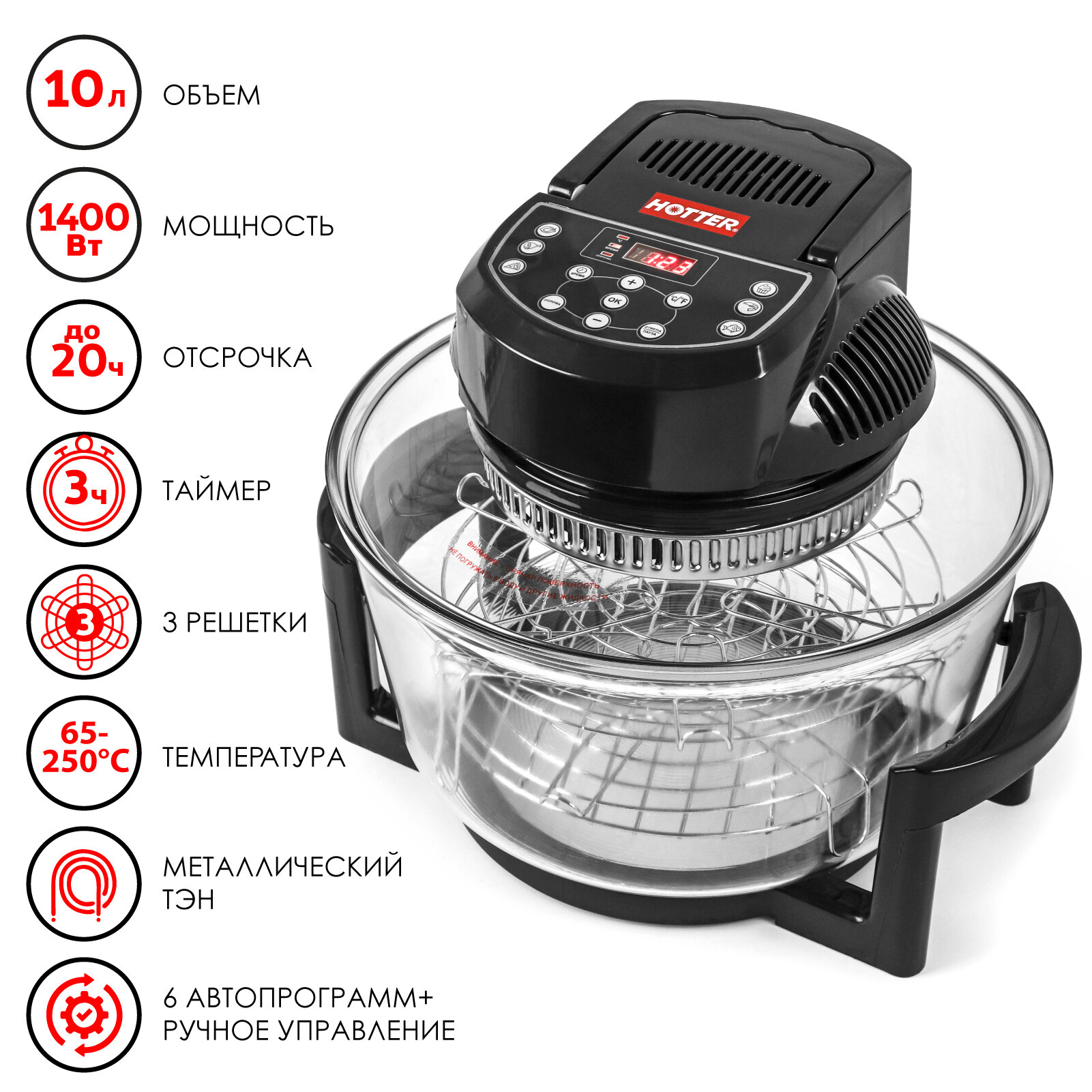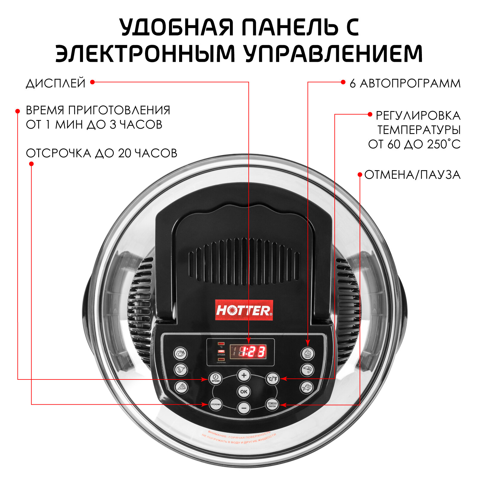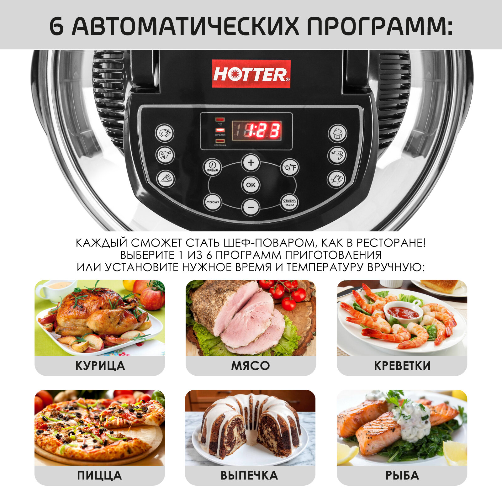 Купить Аэрогриль HOTTER HX-1036 Economy New чёрный с электронным управлением, 6 автопрограмм, регулировка времени и температуры, отсрочка старта 20 часов