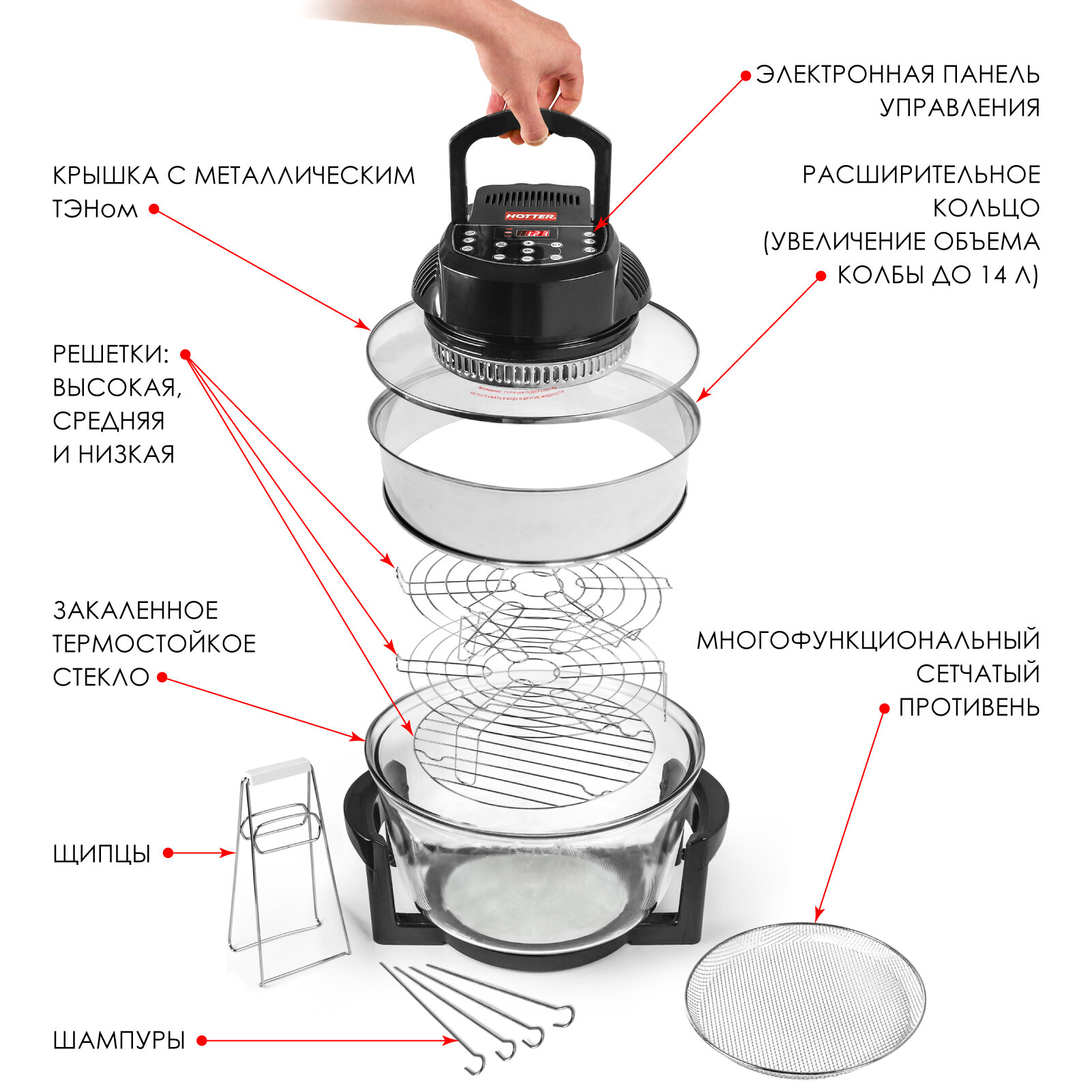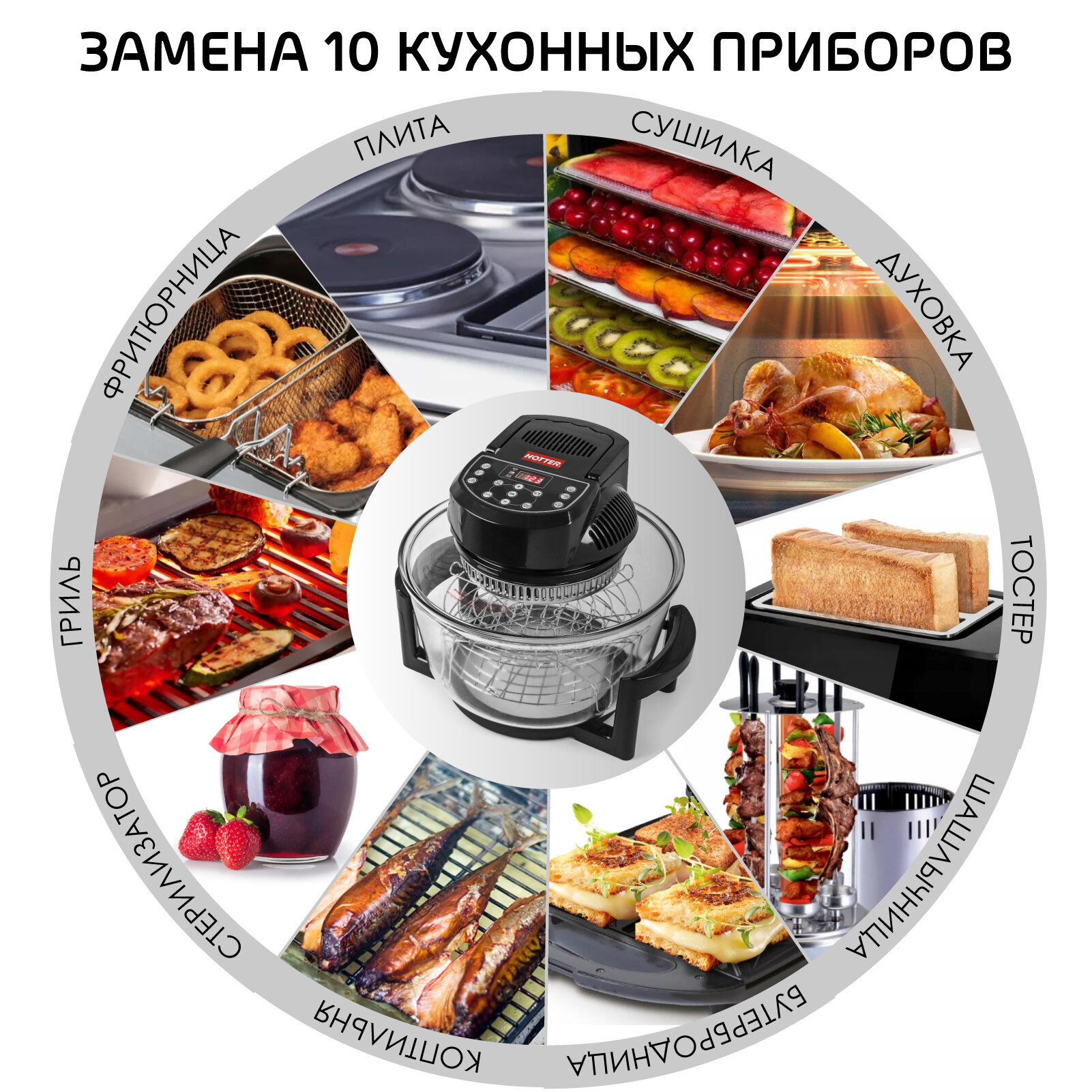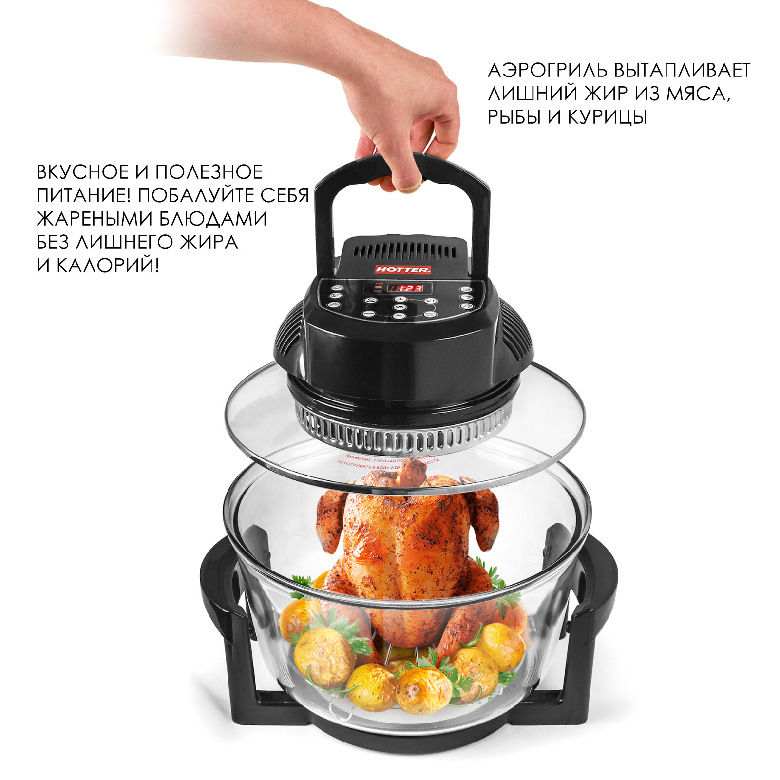 Купить Аэрогриль HOTTER HX-1036 Economy New чёрный с электронным управлением, 6 автопрограмм, регулировка времени и температуры, отсрочка старта 20 часов
