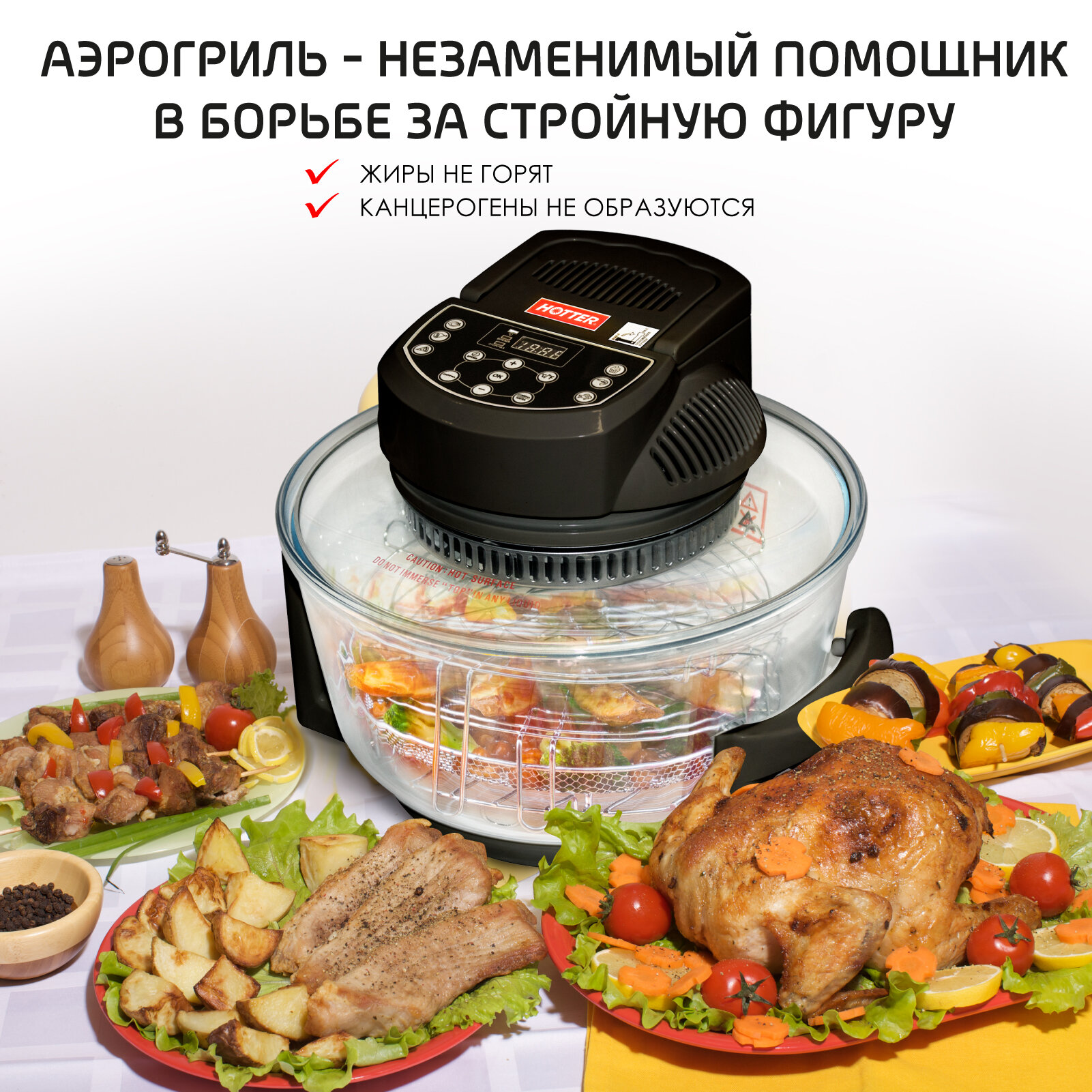 Аэрогриль HOTTER HX-1036 Economy New чёрный с электронным управлением, 6 автопрограмм, регулировка времени и температуры, отсрочка старта 20 часов интересное:
