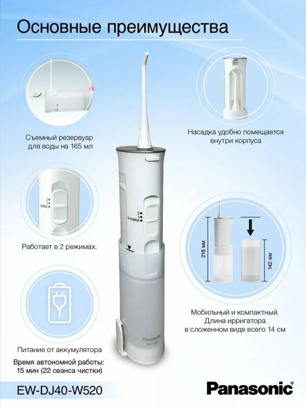 Ирригатор Panasonic EW-DJ40-W520 + средство для очистки ирригатора
