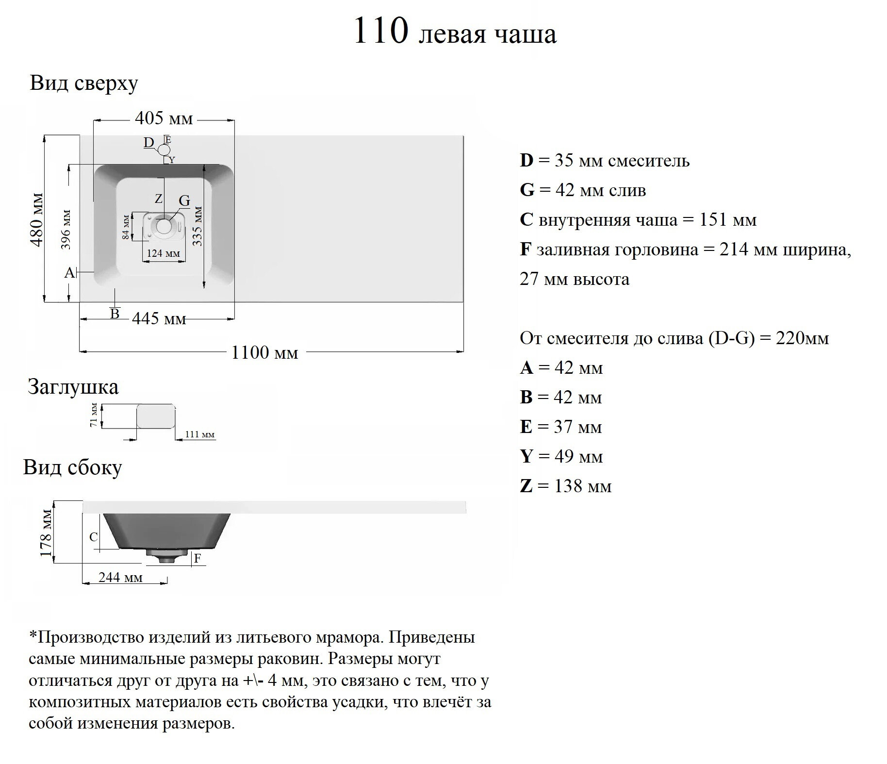 | Число размеченных отверстий под смеситель | отсутствуют |