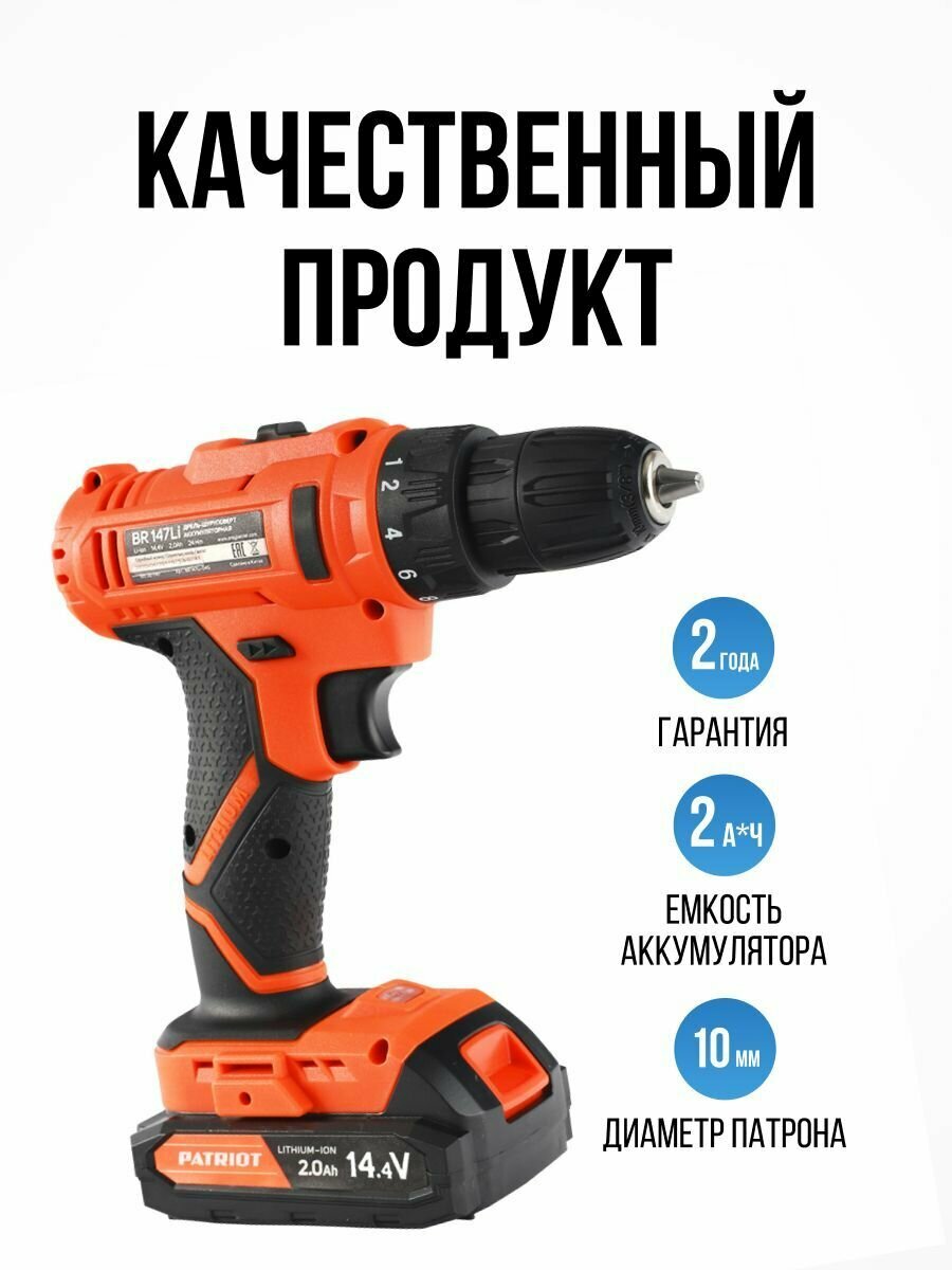 Дрель-шуруповерт аккумуляторная PATRIOT BR 147Li (180301147) PATRIOT