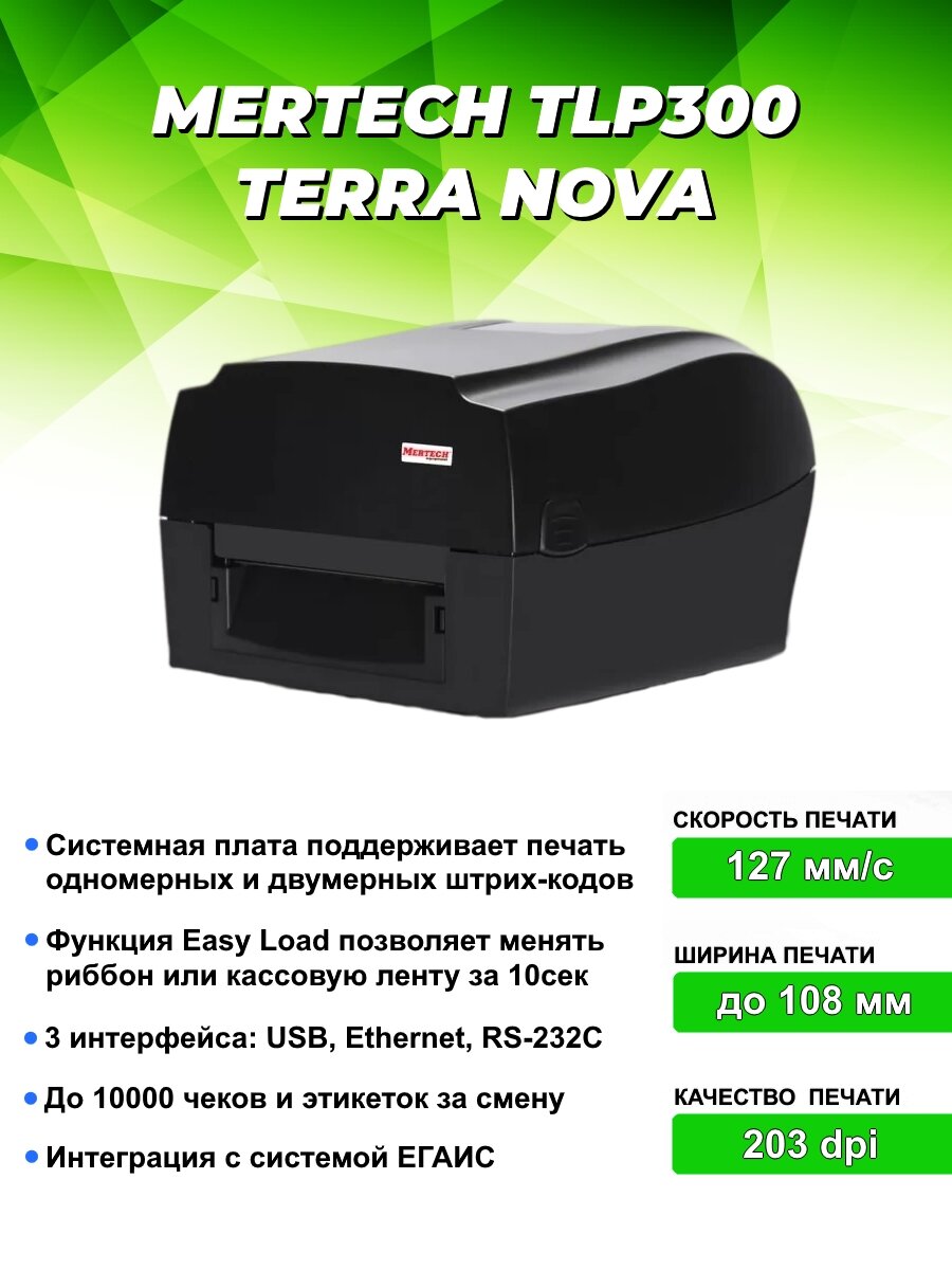 Принтер этикеток термотрансферный MERTECH TLP300 TERRA NOVA USB, RS232, Ethernet Black
