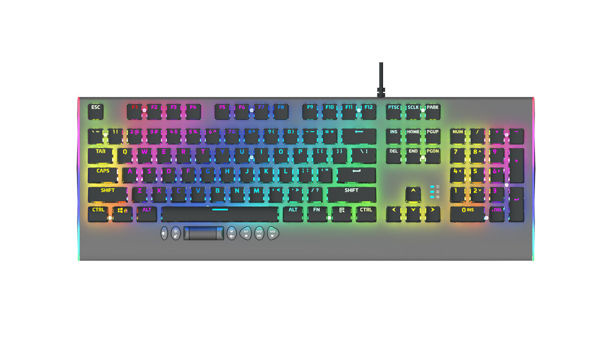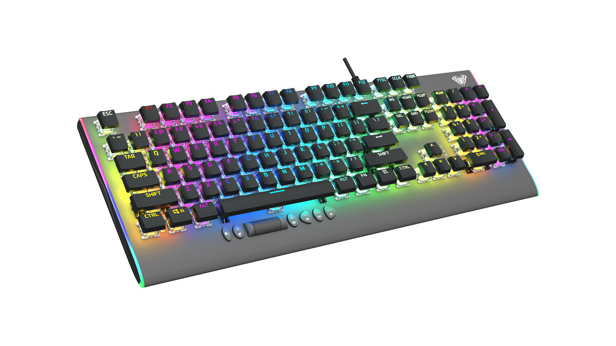 Клавиатура игровая AULA F2099 механическая 106 кл, алюминий-пластик, роллер плюс 5 доп кнопок, RGB подсветка - кабель 1.6м