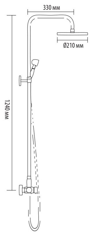 | Дополнительная информация | высота стойки для душа: 1240 мм; диаметр верхнего душа: 210 мм |
