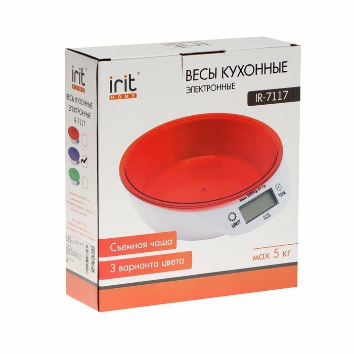 Весы кухонные Irit IR-7117, электронные, до 5 кг, красные