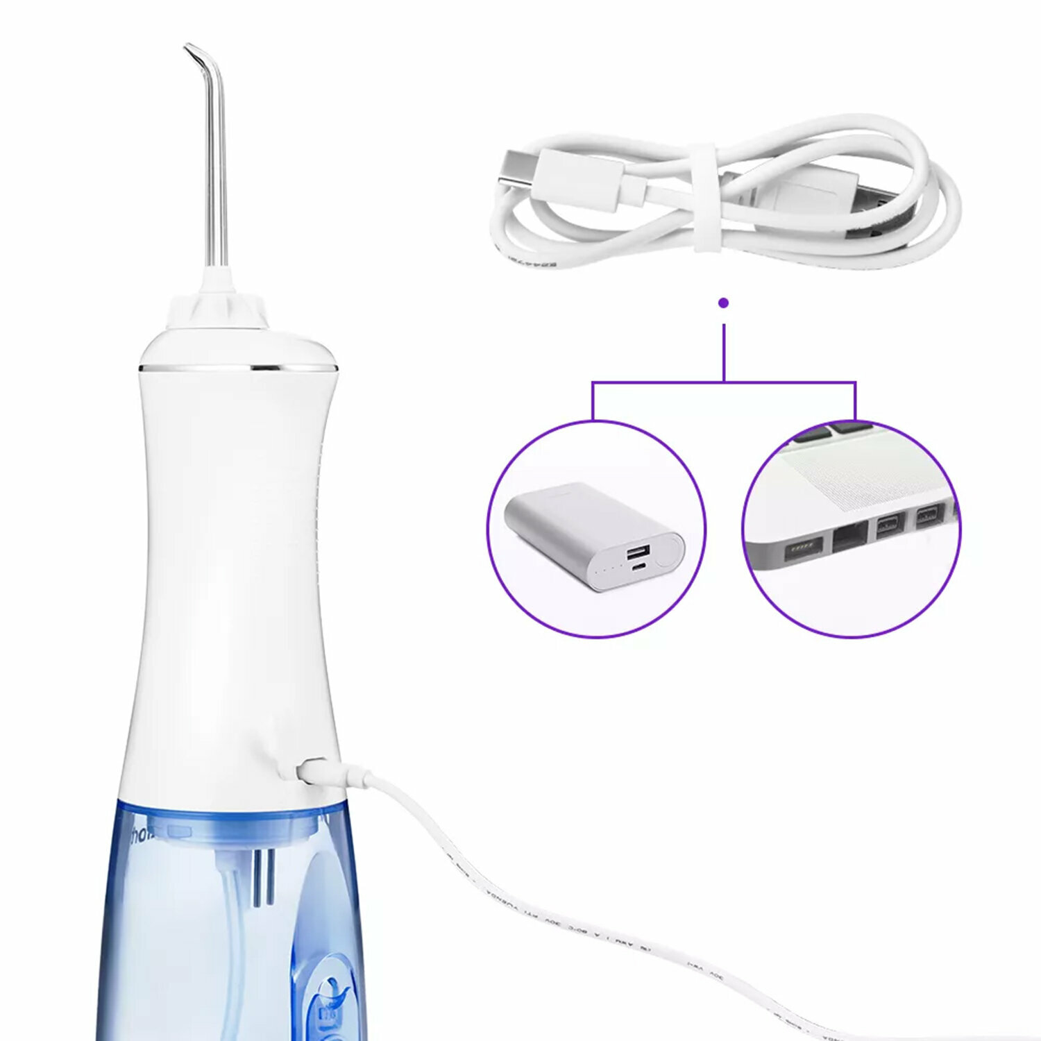 - Много режимов работы. - В комплекте две насадки, поэтому можно пользоваться ирригатором вдвоем. - Оптимальный объем резервуара для воды, в случае чего воду легко можно долить через отверстие. - Есть экран, который показывает заряд аккумулятора. - Зарядка USB, можно заряжать как от компьютера, так и от зарядки для телефона. |