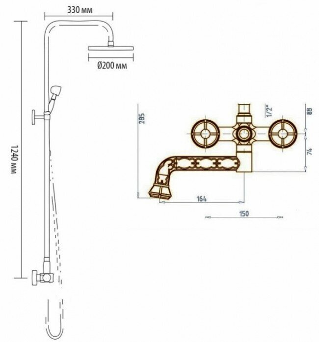 | Дополнительная информация | высота стойки для душа: 1240 мм; диаметр верхнего душа: 210 мм |