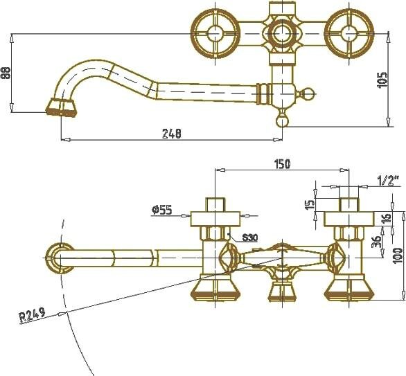 Комплект двухручковый для ванны и душа Bronze de Luxe ROYAL (10121PF/1)