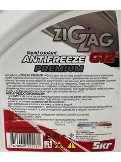 Ниже Вы можете прочитать отзывы на Антифриз ZIGZAG PREMIUM G12 –40°C, 5 кг., ознакомится с подробными характеристиками, посмотреть интересные обзоры и фотографии на Антифриз ZIGZAG PREMIUM G12 –40°C, 5 кг..