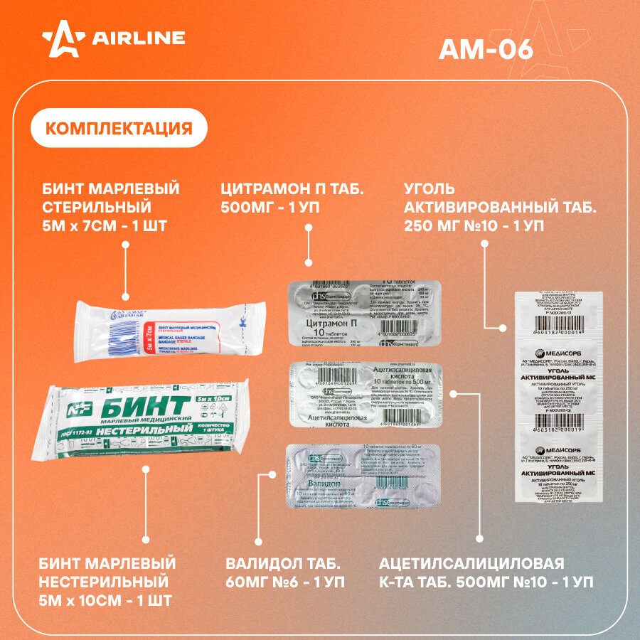 Аптечка универсальная индивидуальная с медикаментами AM-06 AIRLINE интересное: