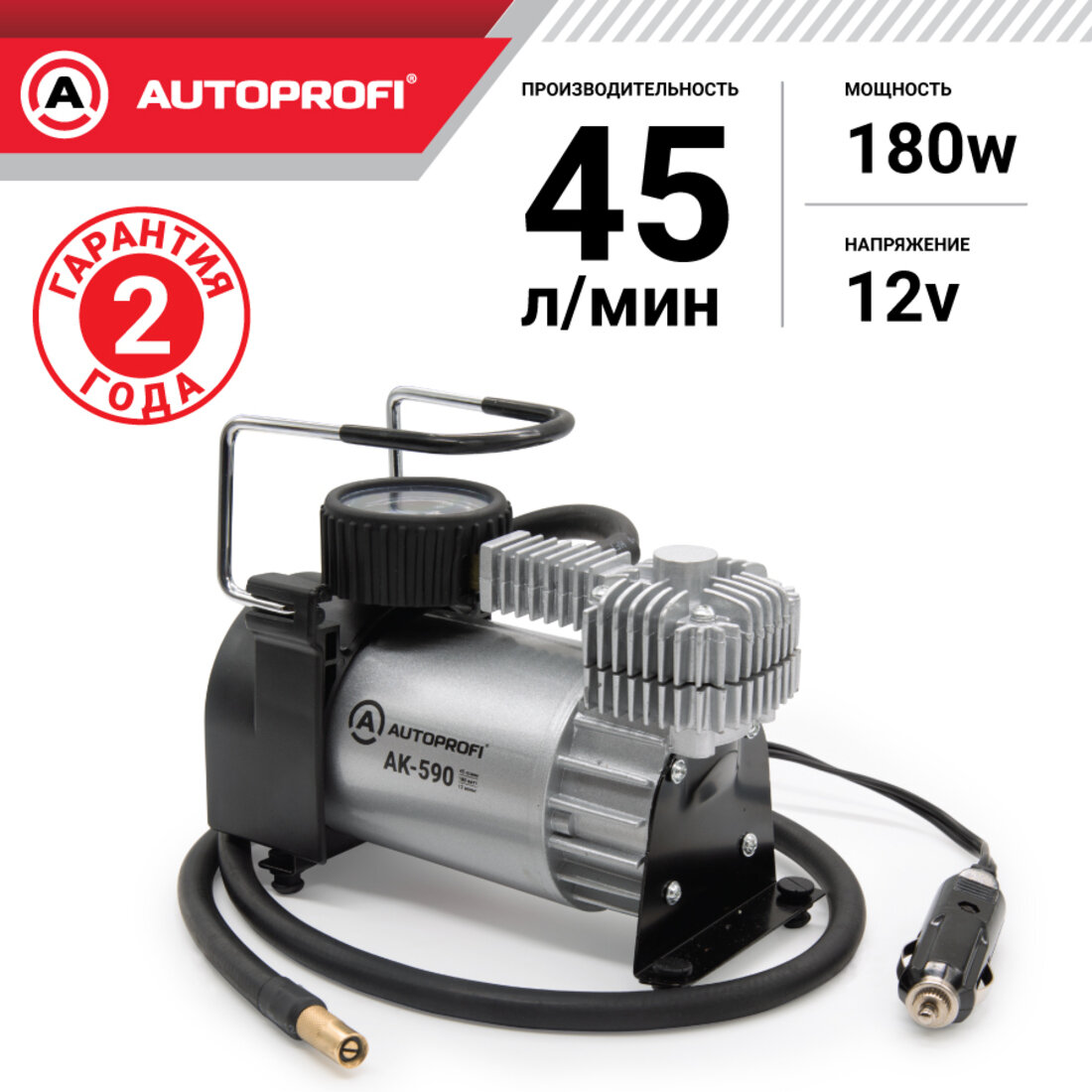 Купить Компрессор автомобильный AUTOPROFI, AK-590, 45 л/мин, поршневой, от прикуривателя