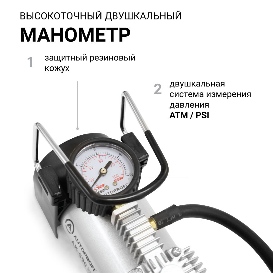 • Компрессор автомобильный AUTOPROFI, AK-590, 45 л/мин, поршневой, от прикуривателя интересное: