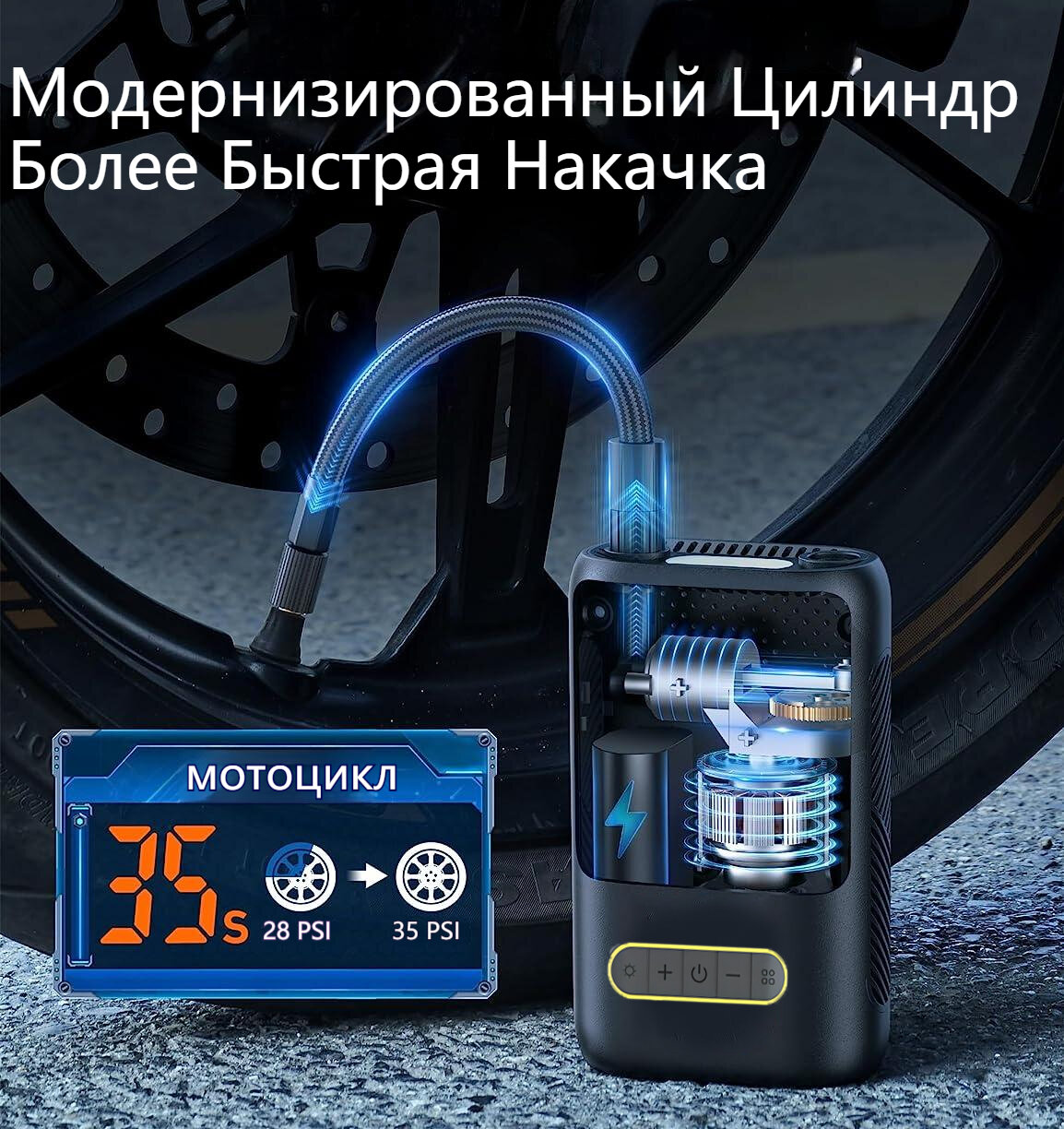 Беспроводной Компрессор Автомобильный Двухпоршневой, Насос Автомобильный С AC/DC, Насос Для Велосипеда,70л/Мин интересное: