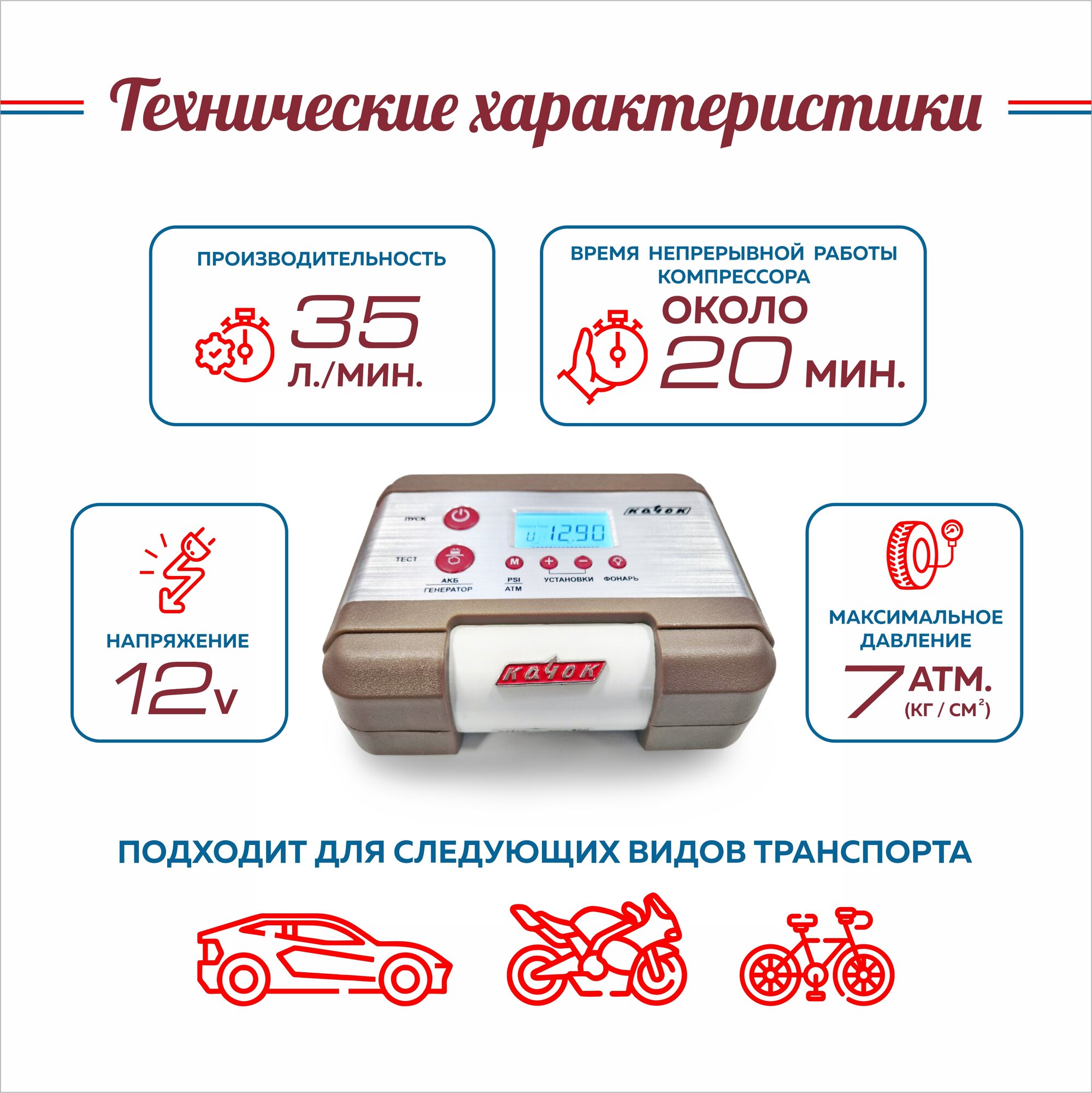 Компрессор автомобильный CityUP двухпоршневой с фонарем, 60л/мин, 300 Ватт, сумка в комплекте + переходник для АКБ