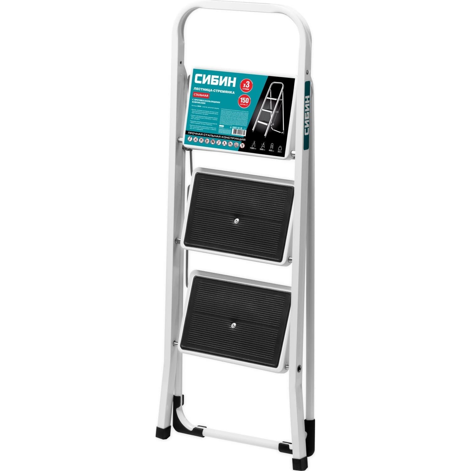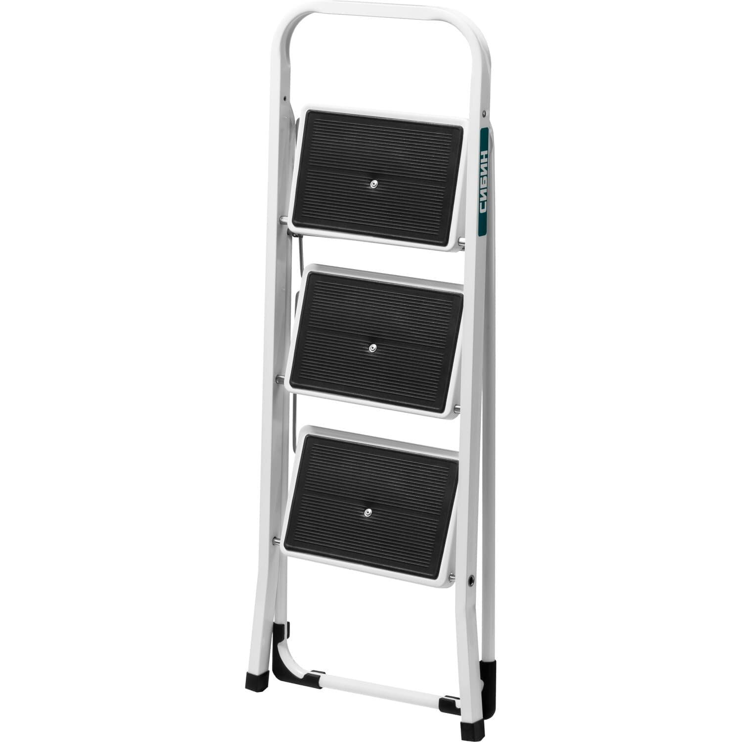 СИБИН 3 ступени, c широкими обрезиненными ступенями, стальная, стремянка (38807-03)
