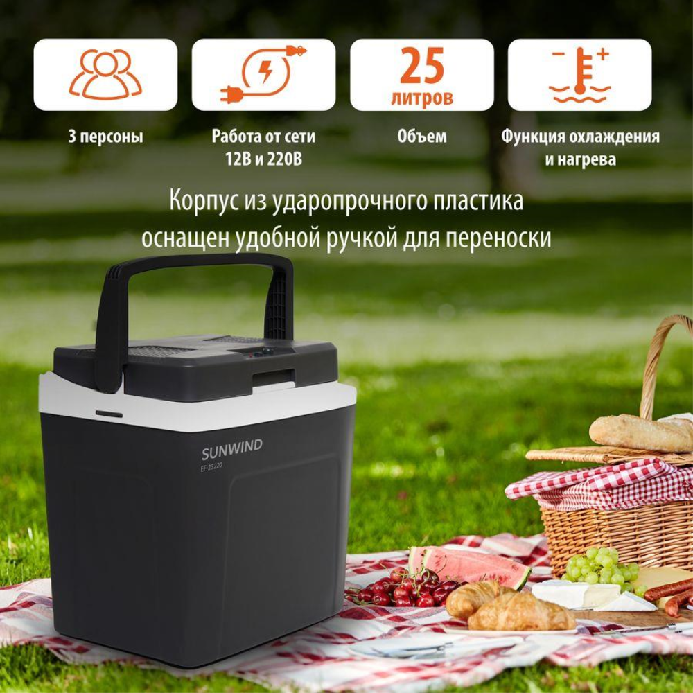 Автохолодильник SunWind EF-25220, 25 л., 60 Вт., серый/белый (1647310) интересное: