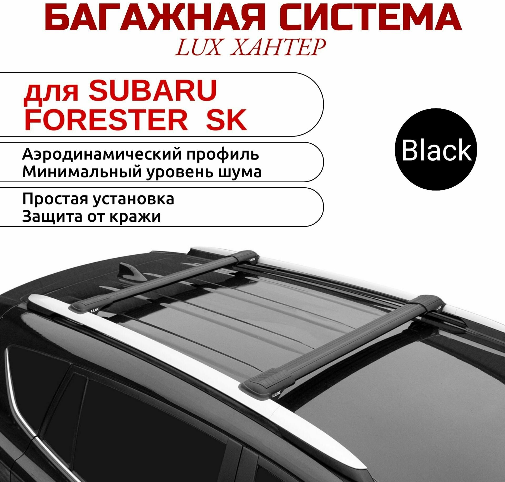 Купить Багажник на крышу LUX Хантер черные крыловидные дуги L54-B, на Субару Форестер (с рейлингами) 2013-2018, арт:LH126B