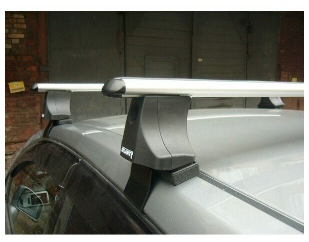 Багажник Атлант на крышу автомобиля Лада Приора универсал с 2007 г. на гладкую крышу (черная аэродинамическая дуга)