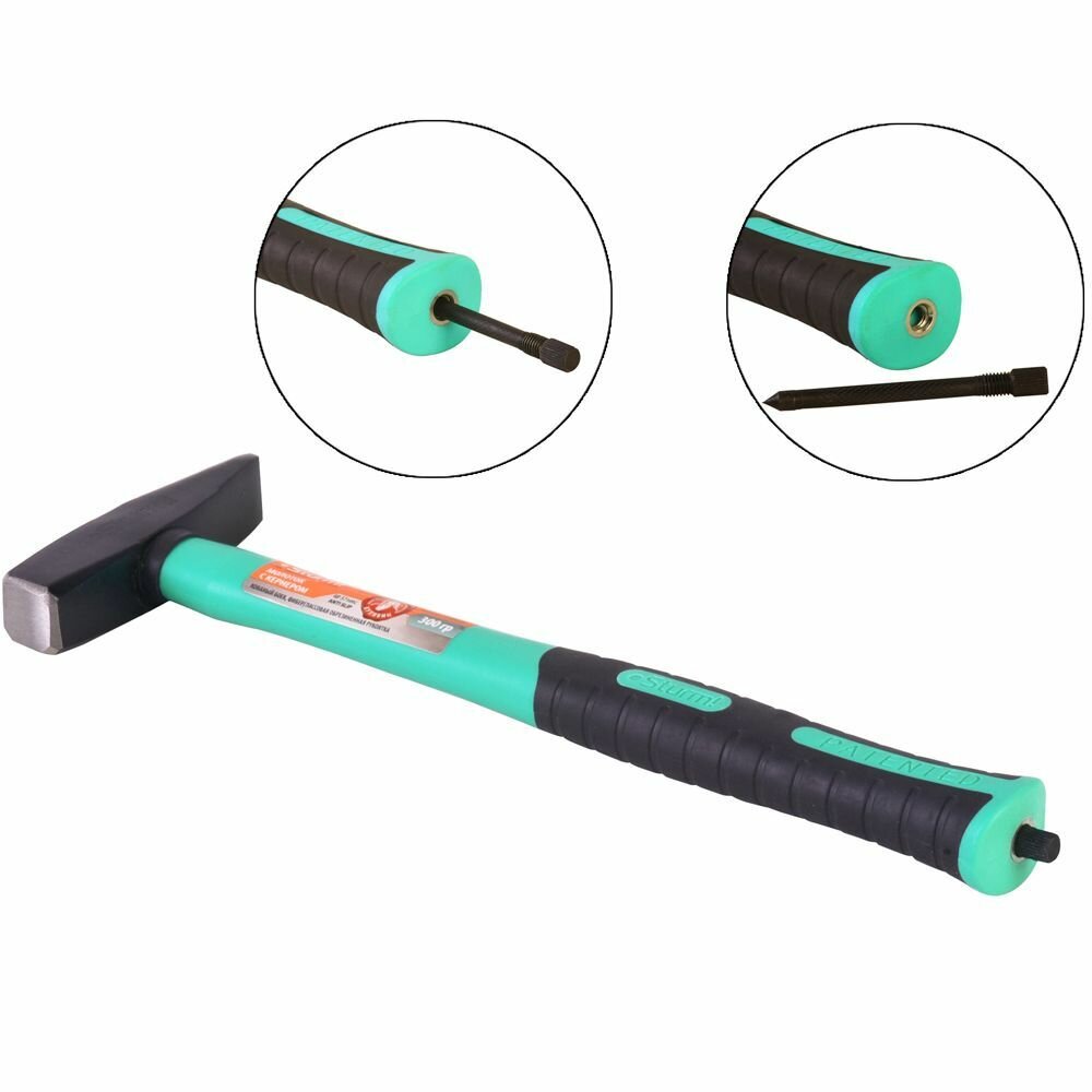 Молоток STURM 1010-07-FR0300, 300г, кованый боек, фиберглассовая рукоятка, С кернером, кулибин