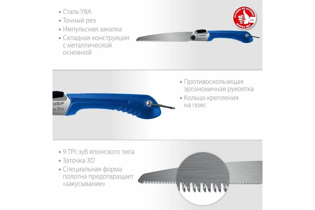 Ножовка для быстрого реза сырой древисины ЗУБР походная 9 205 мм, 15169-18 интересное: