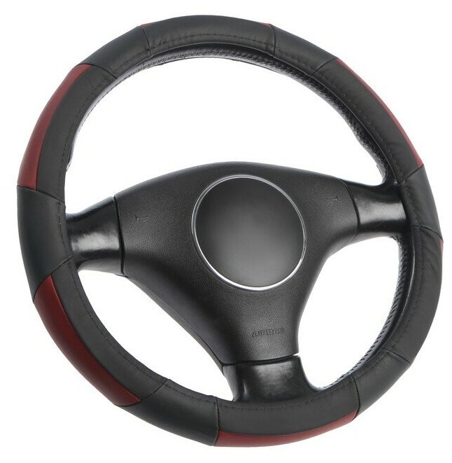 Оплетка CAMC AH3251-2 / Чехол на руль экокожа черный / бордовый (каркасный) 44-45 см