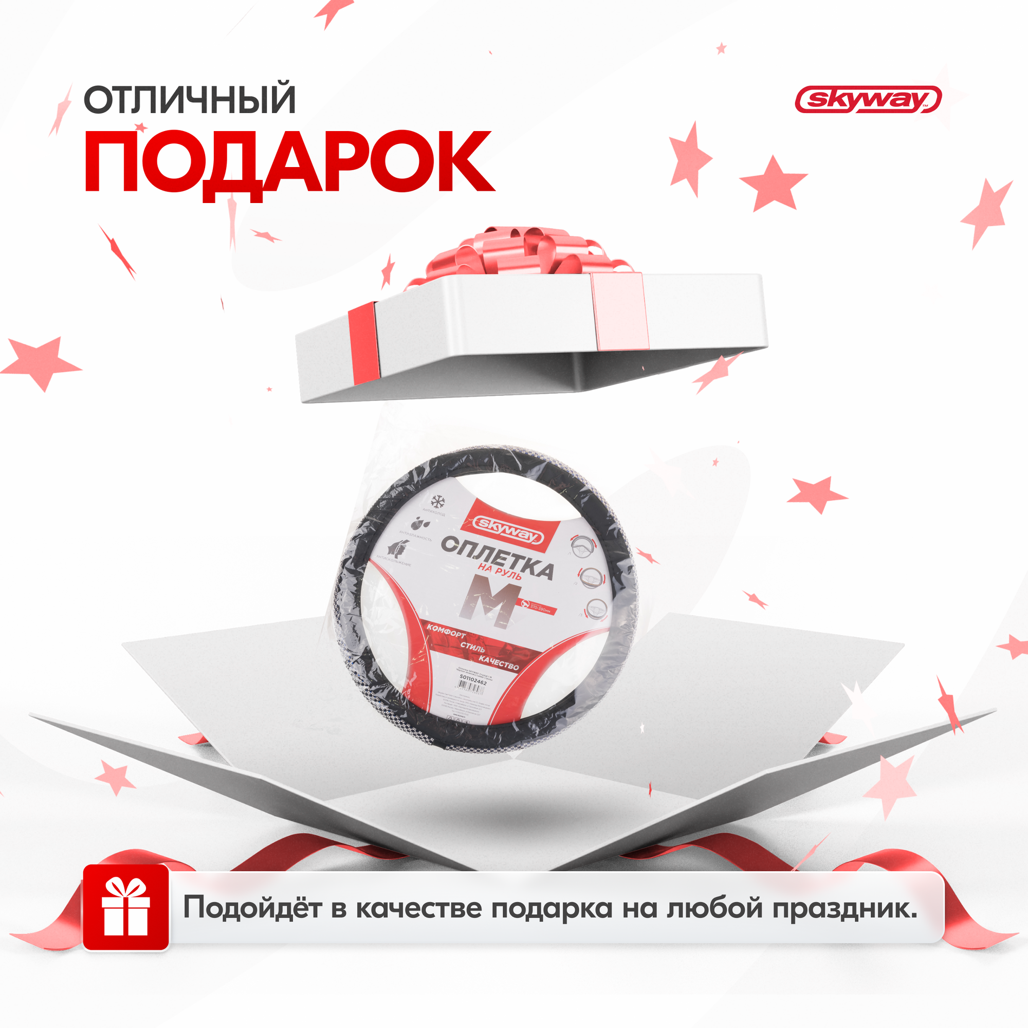 Оплетка на руль Real-8 SKYWAY M (37-39) черный экокожа, S01108013