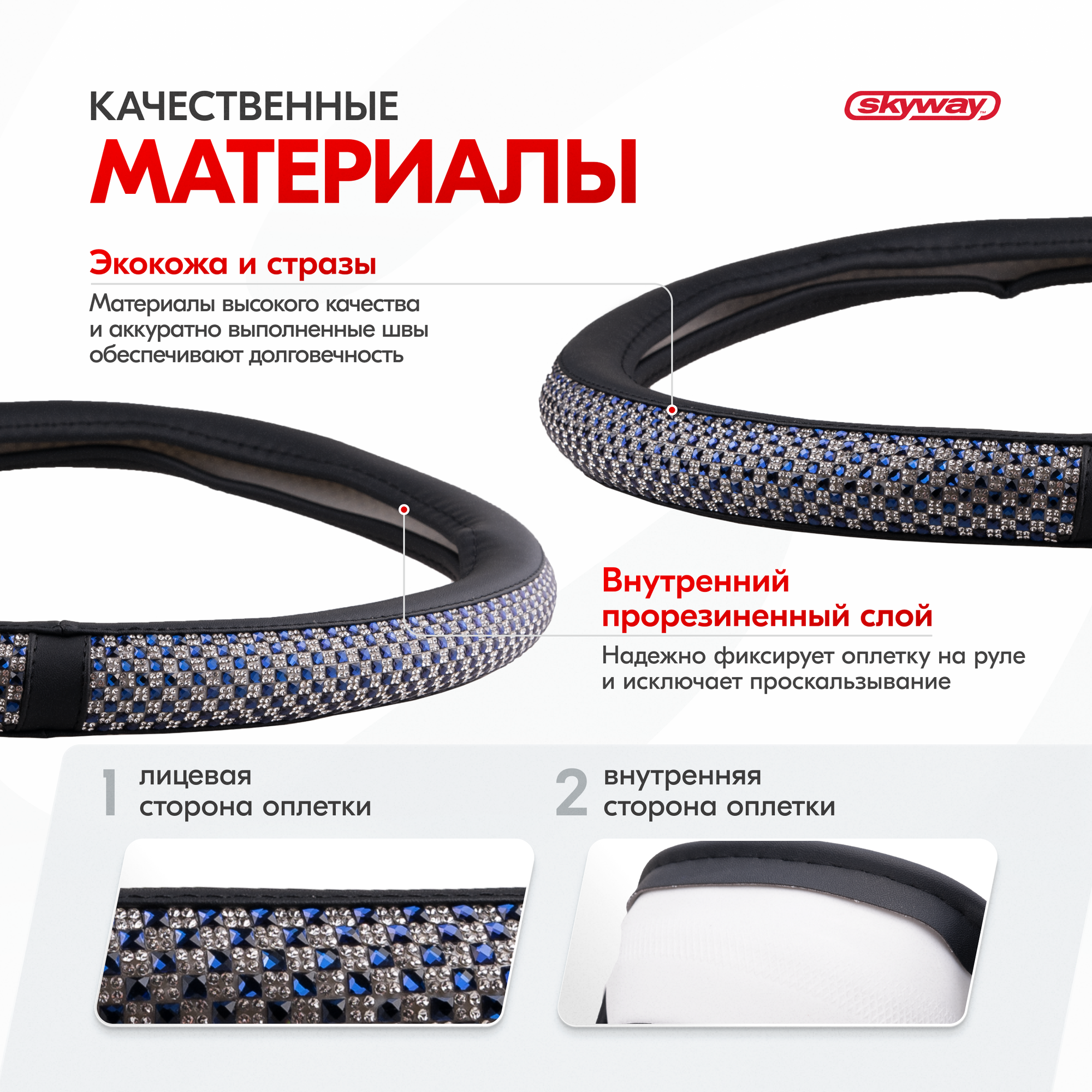 Оплетка Руля M Skyway Crystal-1 Экокожа Синие Стразы Skyway арт. S01102462