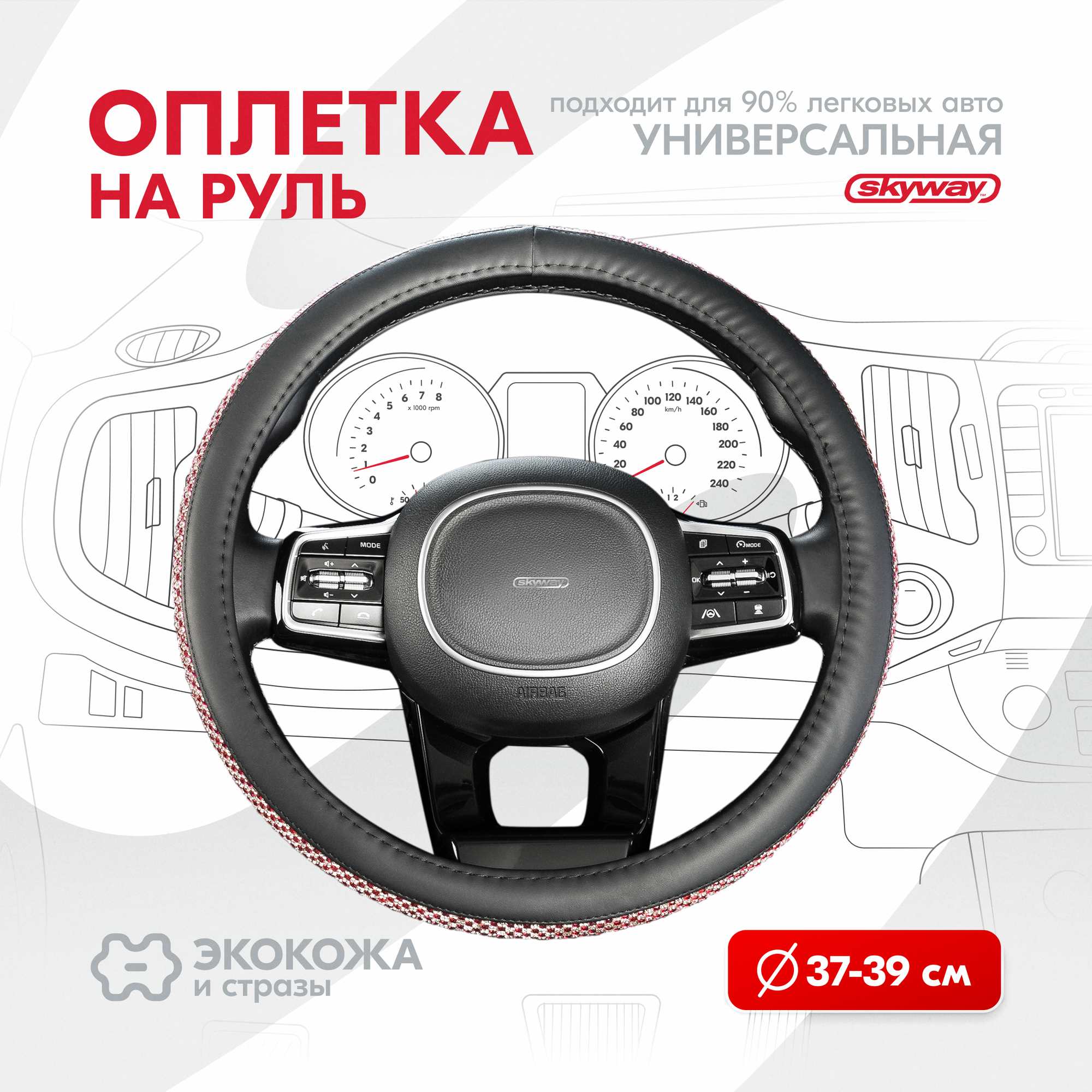 Оплетка руля M Skyway Eco Crystal-1 экокожа красные стразы SKYWAY S01102463 | цена за 1 шт