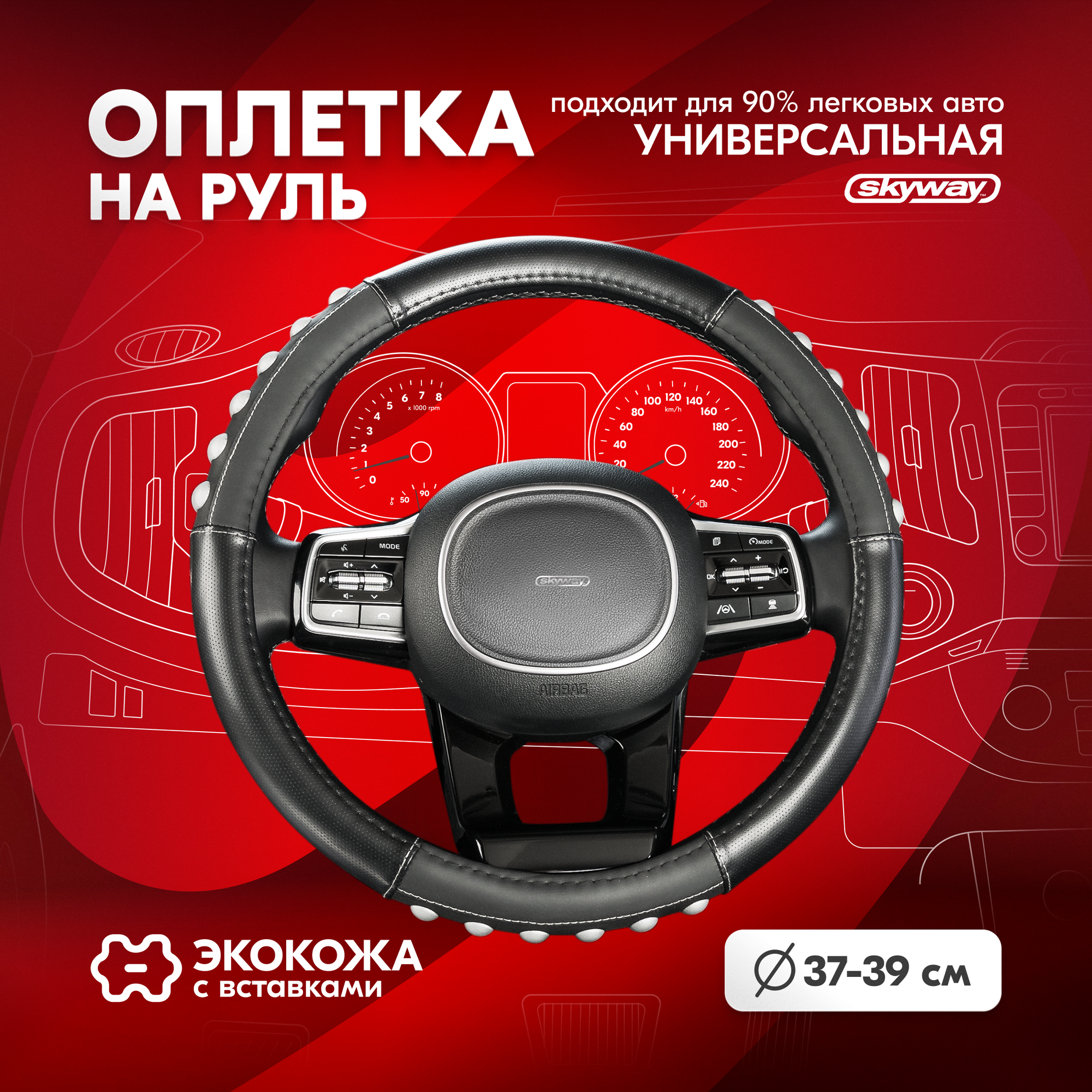 Оплетка на руль Top-12 SKYWAY M (37-39) серый экокожа, S01102501