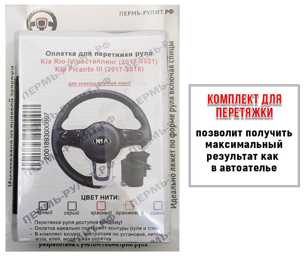 Оплетка на руль Kia Rio 4 (2017-2021) для замены штатной кожи - черная нить интересное: