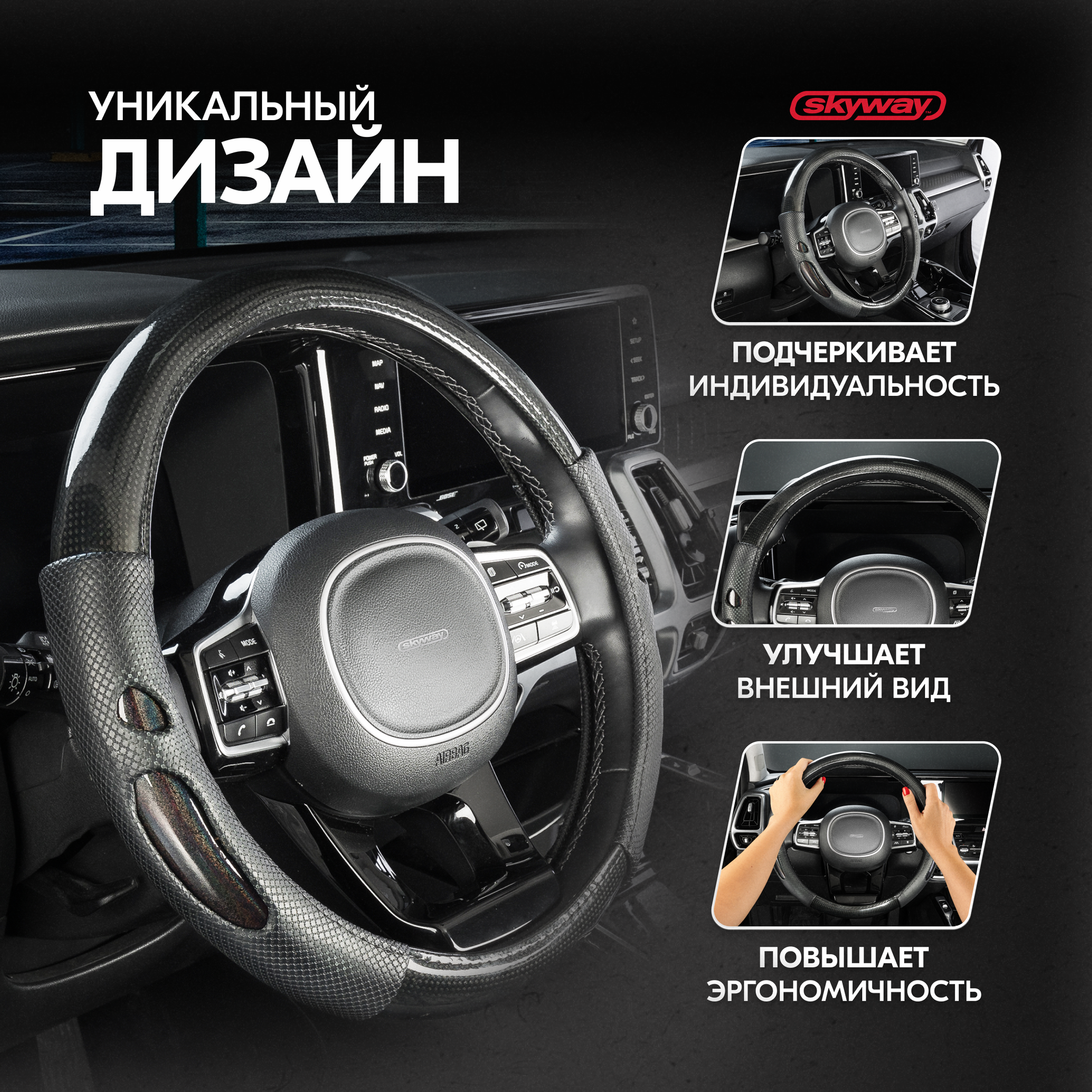 СохранитьSKYWAY S01102490 Оплетка Glamour-8 M Черная экокожа; SKYWAY интересное: