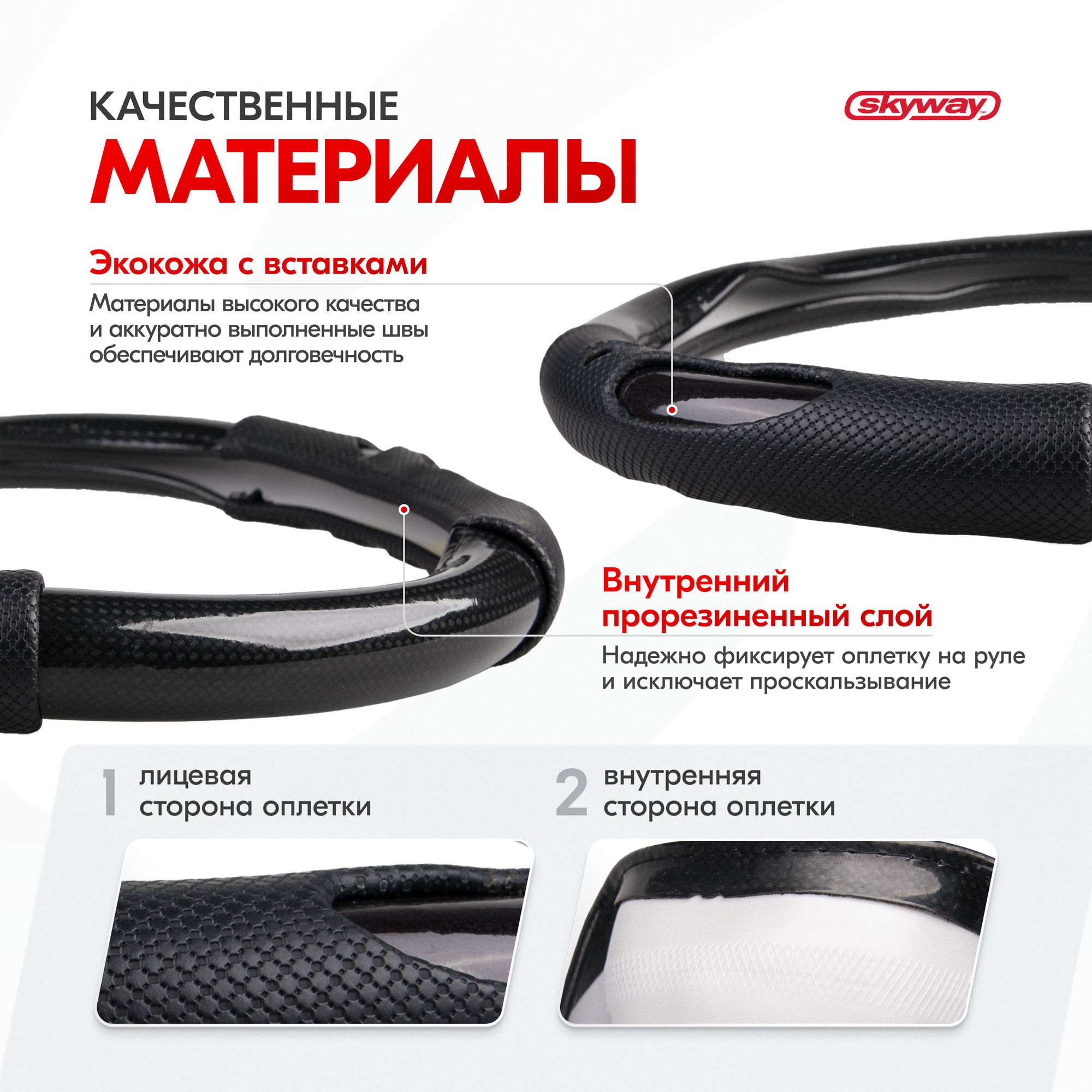 Оплетка руля SKYWAY, экокожа, 37/38/39 см, размер M, S01109016