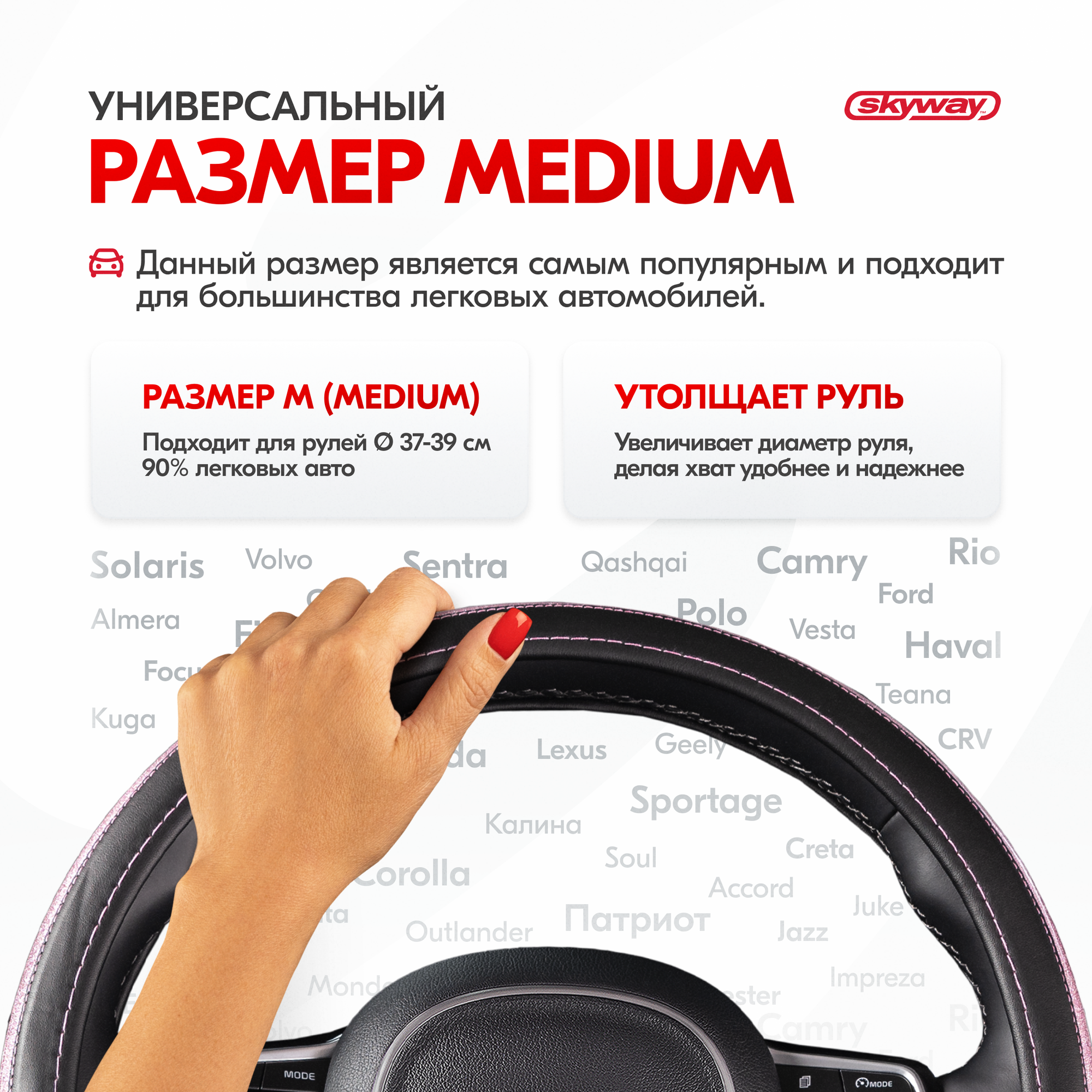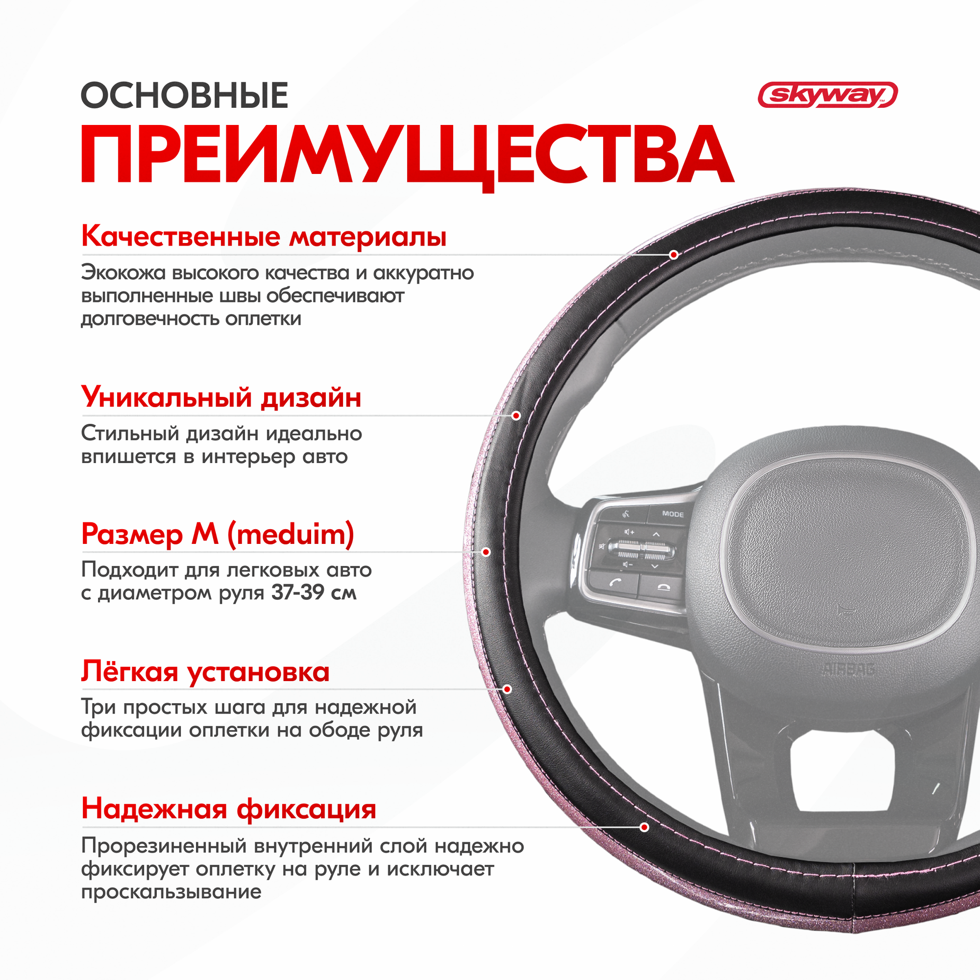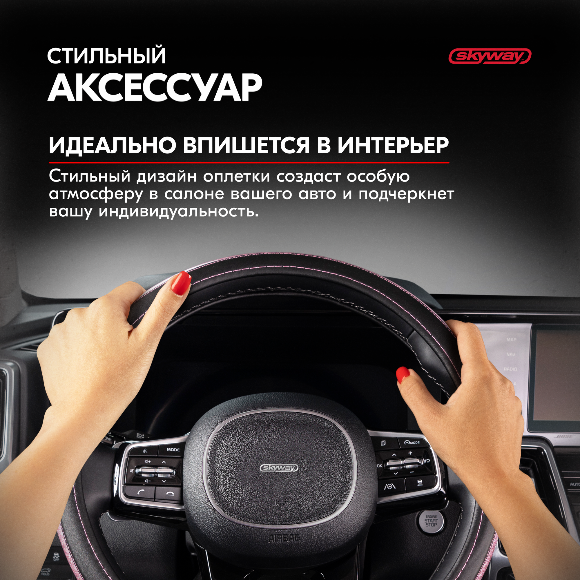 СохранитьОплетка на руль Luxury-7 SKYWAY M (37-39) черный; розовый экокожа, S01102437 интересное: