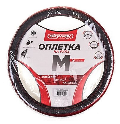 Оплетка на руль Luxury-7 SKYWAY M (37-39) черный; красный экокожа, S01102434