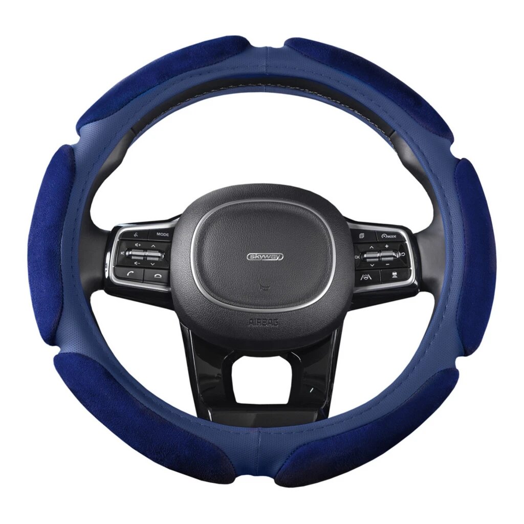 Купить Оплётка руля SKYWAY замша 6 подушечек Синяя ECO (M)