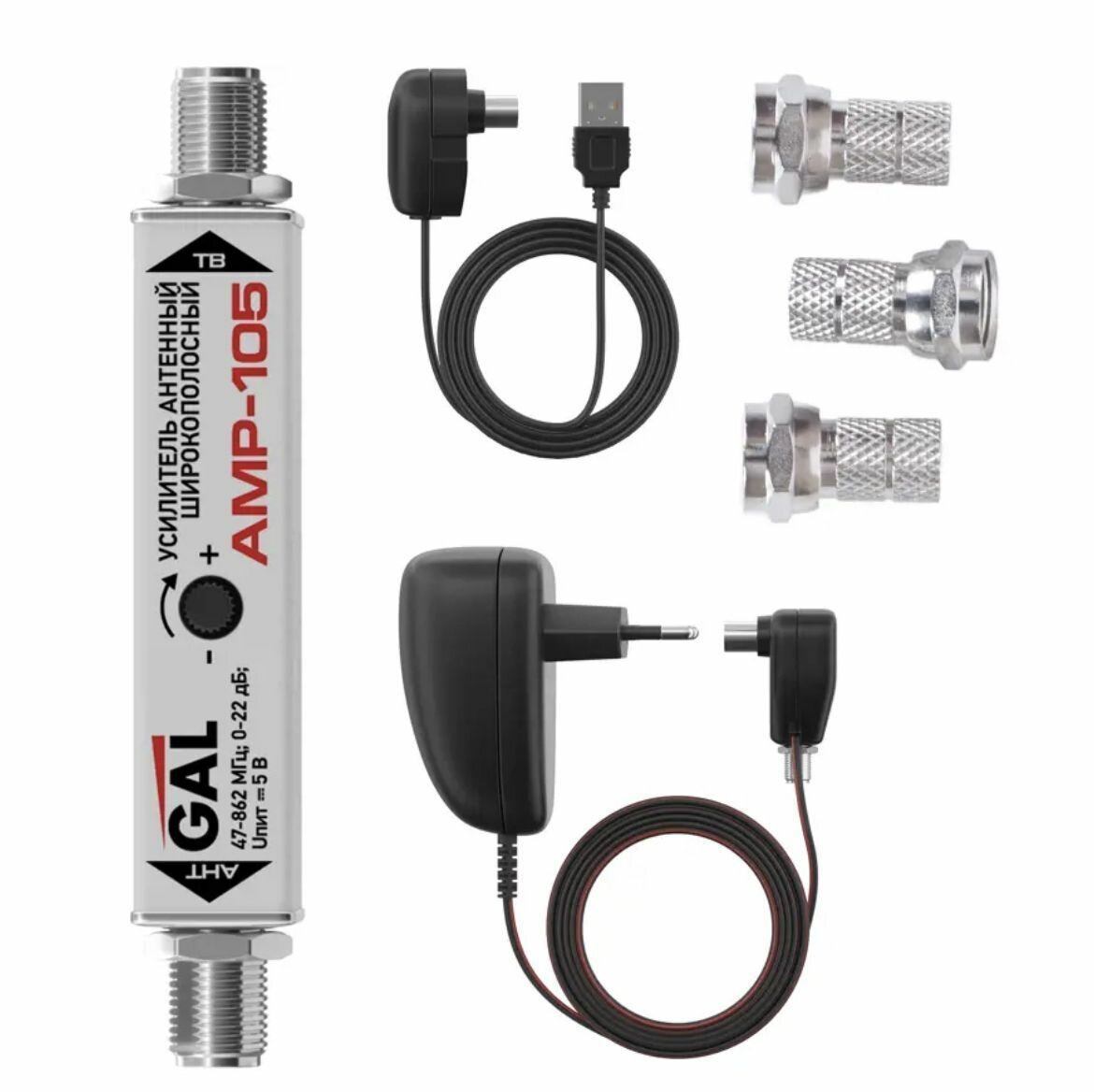 Усилитель ТВ сигнала GAL AMP-105, широкополосный, в разрыв антенного кабеля, активный