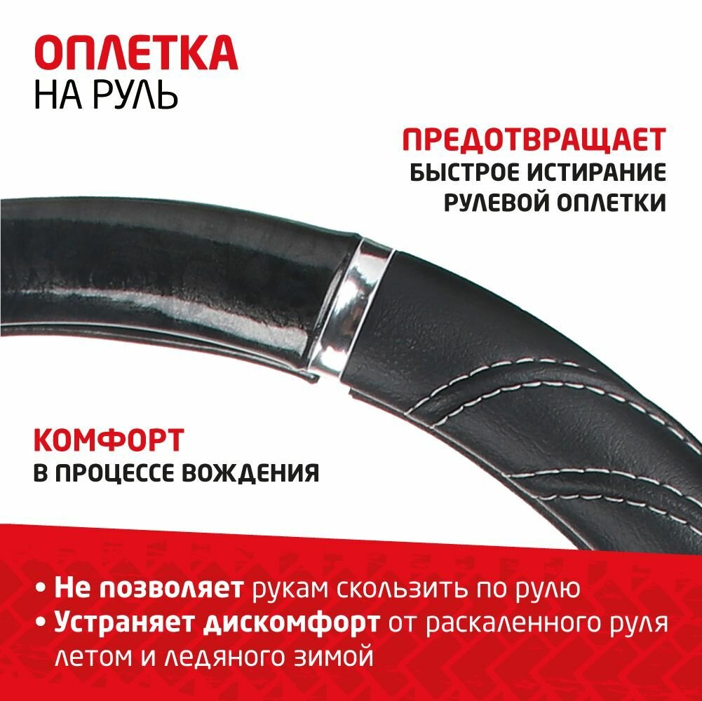 Оплётка, чехол на руль авто, экокожа, размер М 37-39см интересное: