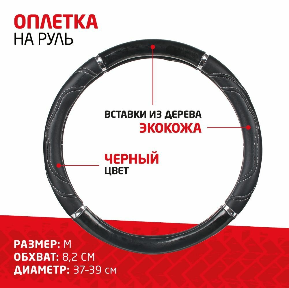 Оплетка руля NG, экокожа, со вставками "темное дерево", черный, разм. (M)