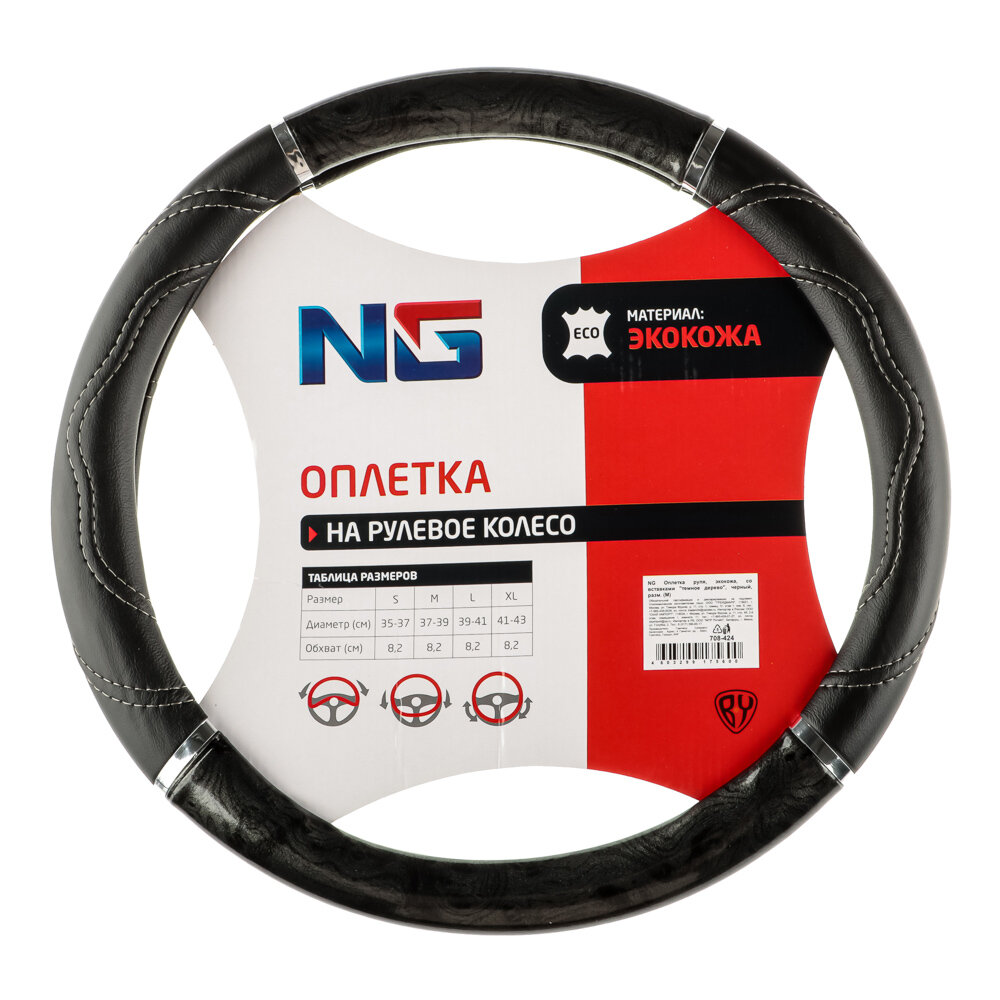 NG Оплетка руля, экокожа, со вставками "темное дерево", черный, разм. (М)