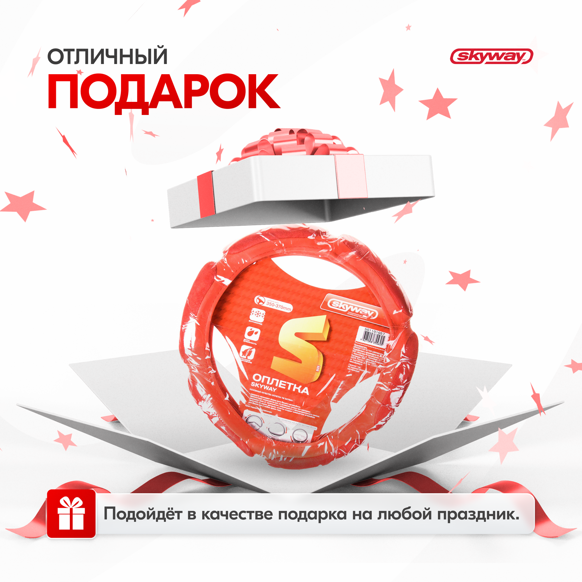 Оплетка руля SKYWAY Sponge Classic S, красный, алькантара, 6 подушечек, S01101057