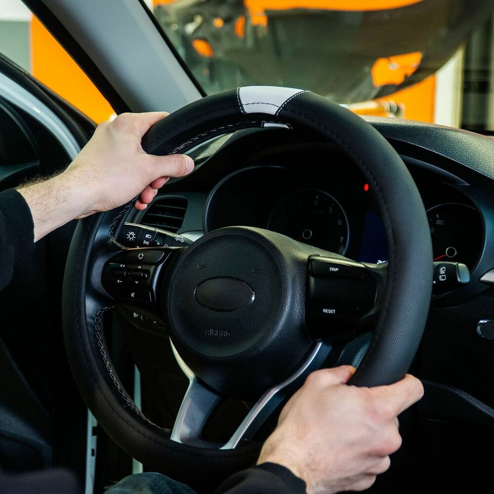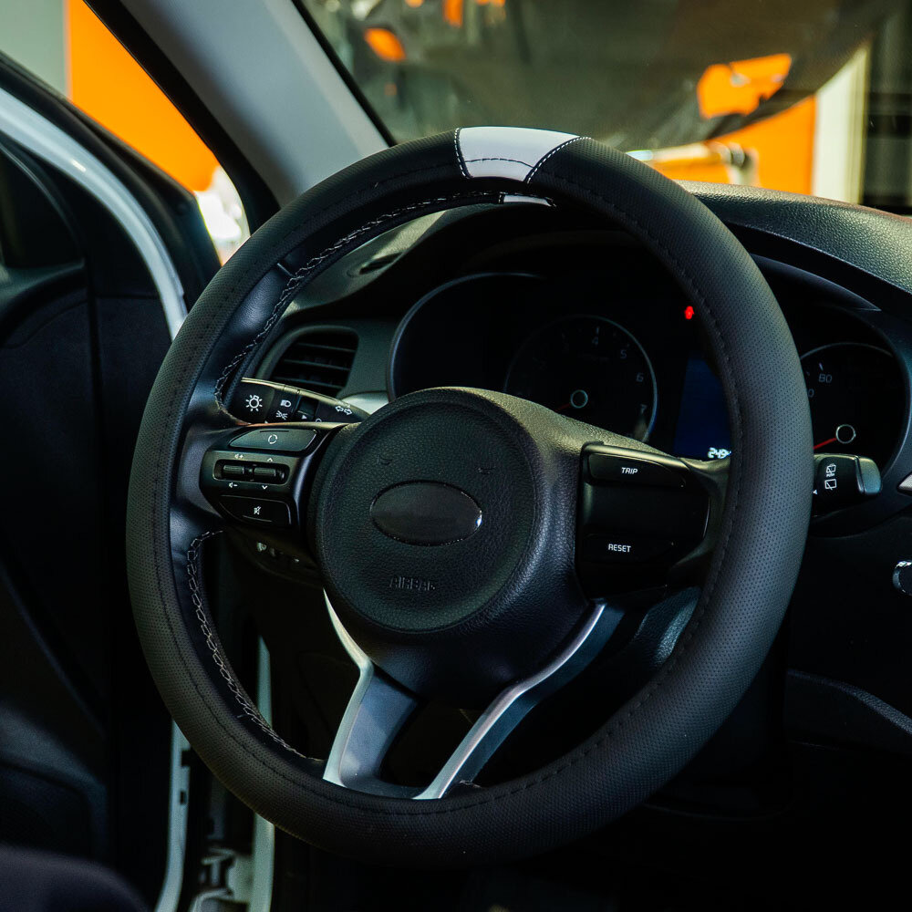 NG Оплетка руля, экокожа, черный, белая вставка, размер М интересное: