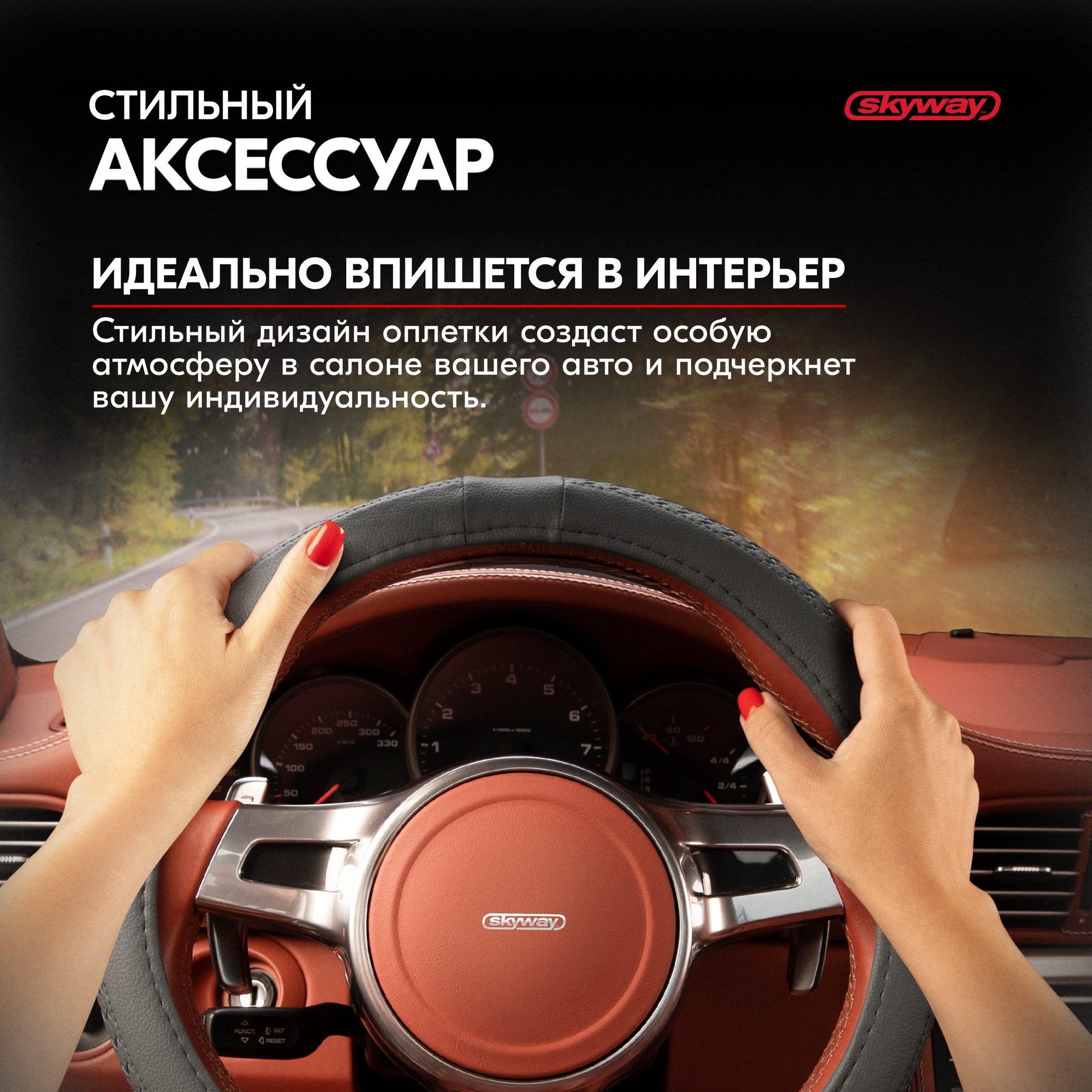 Оплетка руля SKYWAY Modern-5, экокожа, размер S, диаметр руля 35/36/37 см, S01102283