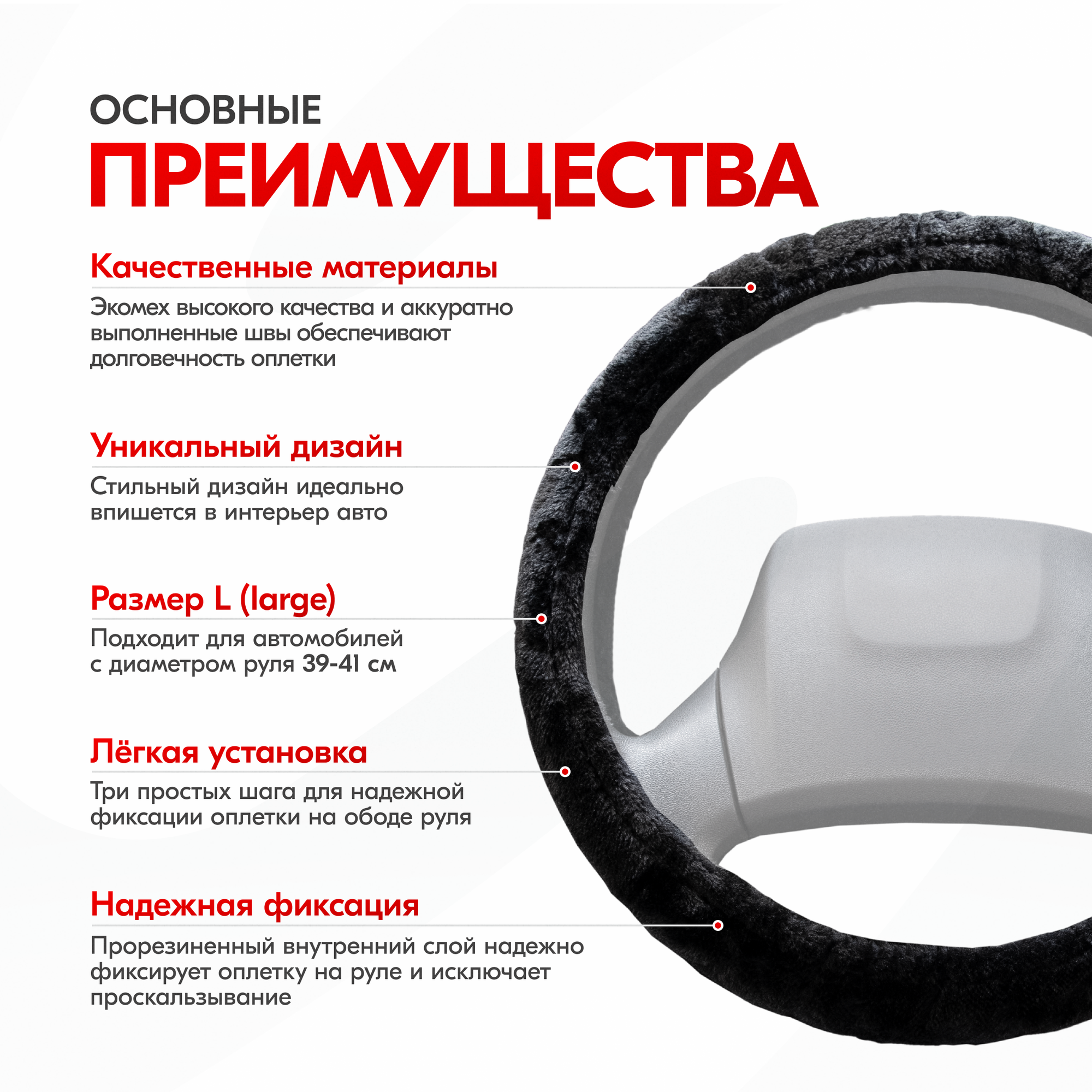 Оплетка на руль L "SKYWAY" Arctic-2 искусственный мех, черный SKYWAY S01107012 | цена за 1 шт