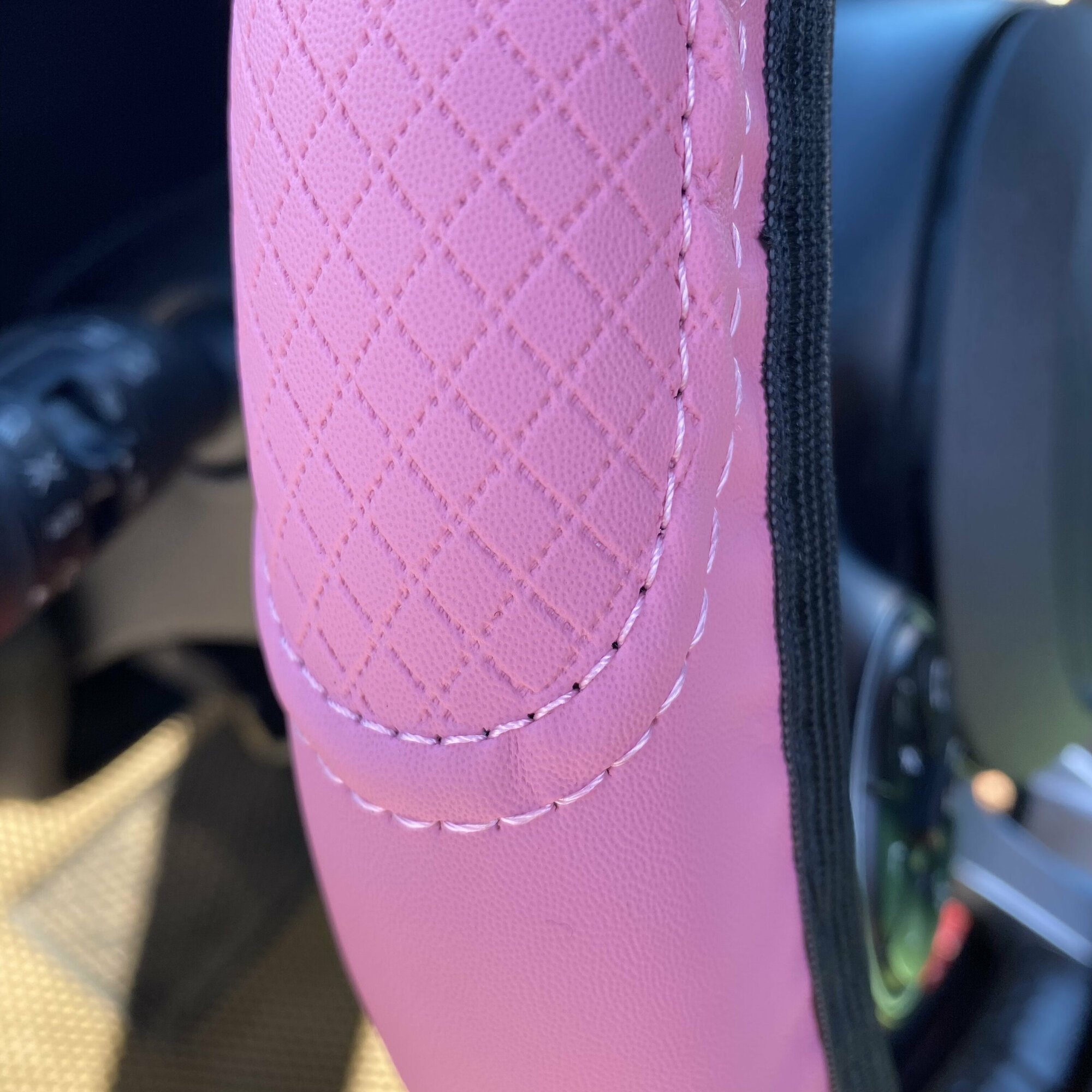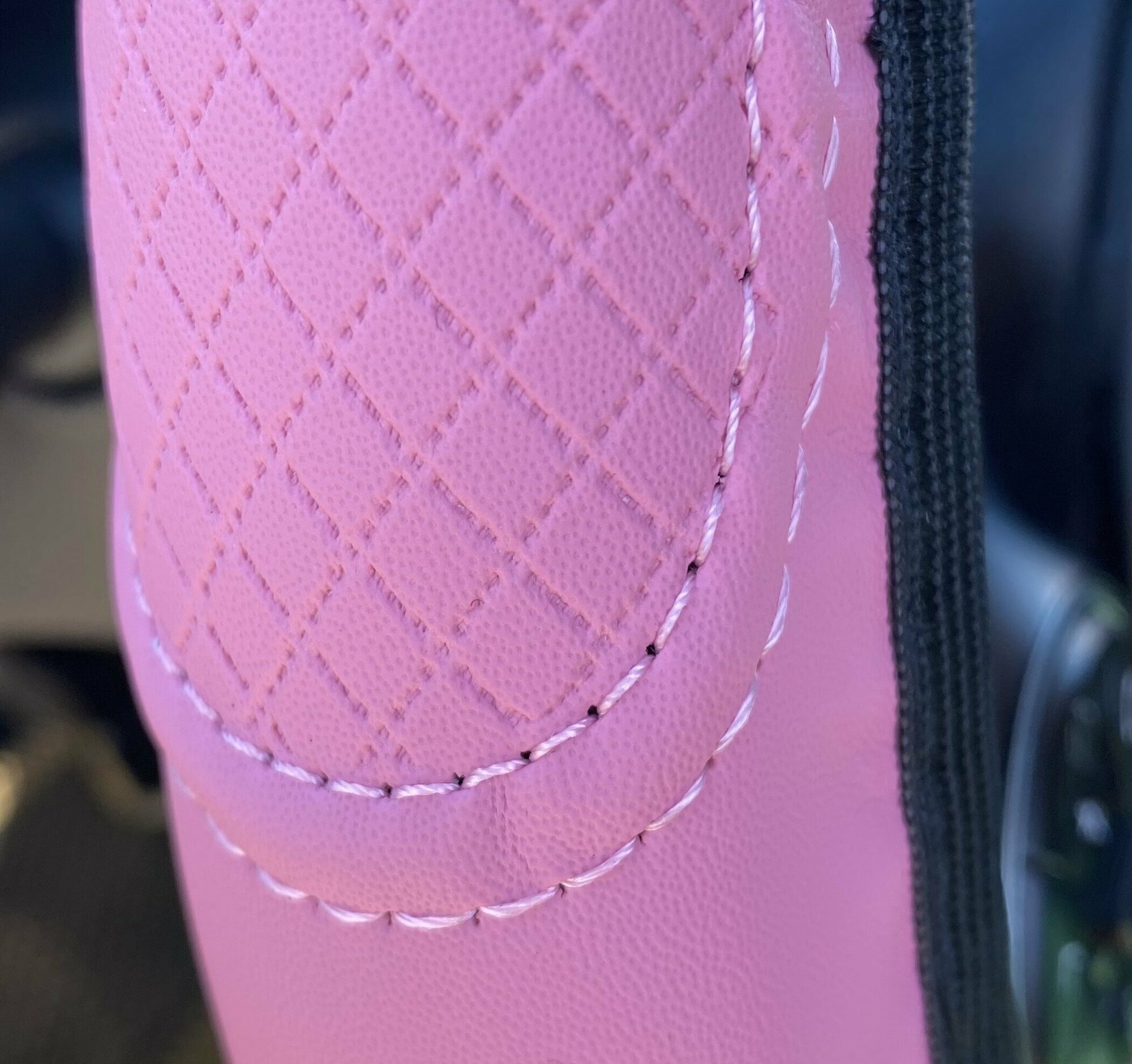 Оплетка на руль из искусственной кожи черная/розовая размер М 37-39см